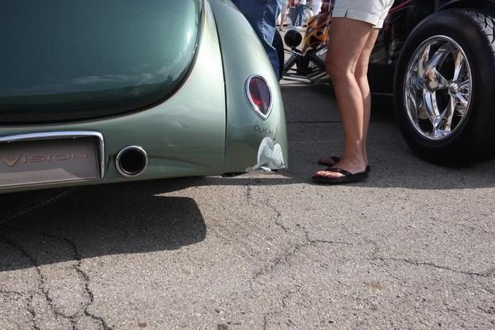 Troy's car was fabulous and I still hope to grow up and be like him someday! I felt horrible for them having the trouble on the autocross. There was a little grumbling about them not being on the show field in the morning and doing the parade. we also had a "repair" Friday morning and was told with certainty that we had to back on the show field before 12 noon and than all SMOY contenders must parade over as a group and do the autocross to be pre qualified for SMOY. There was a lot of whisper, Wheres Troy when we all showed up at the autocross. I have to admit I was thinking, as well as a lot of others, there was a open slot at the top when he did not show up. Again, as A builder I sympathize the problems they were having and the car is killer no doubt. I am most happy for Jeff. He not only built a nice car, but drove the wheels off it on the autocross, and is a super cool guy to boot, so way to go Jeff. Time Machines always builds nice cars and they ran the sheot out of their car on the autocross after Mike was telling me for a few weeks they WOULD NOT be running the car hard. When they over drove it and spun it out, instead o limping off, it was john Force time to the finish line. I thought the front tires were going to come off the ground when they matted it on the back stretch! The black 68 was a neat car. I have to think it got extra consideration for setting the fastest autocross times, and deservedly so. He ran the hell out of it, and is obviously a good driver. For ourselves and Project Emptynest, we were just honored to be on the field next to some of those cars. We had some "unfinished" details as the motor put us SO FAR BEHIND that obviously would hurt us. We also could have used a much better driver for the autocross. Like Troy, we fired Emptynest Weds night late, drove it on the trailer, and went to the show. Friday morning I drove it 1 mile to the show field from the hotel. The autocross was miles 1 to 1.5, LOL! All and all the car did good. Needs fuel injection tuning as I believe the twin TBs are creating some interesting additional tuning. Lisa and I drove it around town last night and put 30 miles on it. Actually the car did pretty damn good for a out the door and go deal! So my fastest time was 19.3 I think. I simply overdrove the **** out of it, caught a cone on one faster run by a tennie. So I threw the keys to Scott Pruett and he went out and busted off a low 18 having never driven the car 10 feet, LOL! The injection is having a "tip in" issue when you come on and off the gas fast that is crippling it in tight corners, almost starving it in corners. Almost as if running out of gas which causes a Oh **** moment when the thing comes back on at 4000 RPM and you are at 650LBS of torque, LOL! Had that starving issue been cured I think we could have tuned him around much faster. I am a little surprised that scott's time did not count. The killer 18.2 (amazing BTW) time for the 62 Impala was set by celebrity driver Kyle Tucker and it counted. But I guess if you consider Kyle was the builder and drove it much like I was the builder and drove Lisa's car I guess it is the same thing. Times did not count anyway. i just wanted to be the guy that had the balls to hand a driver the keys. no one else did! It was really, really, REALLY nice to see some of the absolute World of Wheels show cars suffer on the autocross. There were at least half a dozen cars I thought we would br pushing off the coarse as they were running so badly. Some of those guys were sweating the autocross real bad. A couple would stop after each run and check there car for sctraches, rubs, chips, after every lap! I have to take off my hat to Godguys and Air Ride for making the autocross requirment. And as they thought, while times did not matter, it only ook a couple burnouts to let all the participants know they would need to do more then coast the coarse! I am almost certain that while they said times did not count, that had there been no autocross, a couple other indoor show cars would have displaced some of the top 5. For us, we had a great time cruising around in Lisa's EmptyNest and Michael's Prodigy. Michael kicked our ass a couple times last night in a couple of stop light wars. That's OK, When we get Lisa's motor tuned, I see some serious grudge racing in our future. I cannot wait. We may not have won the big trophy, but I did get to cruise the Nationals with my wife and our boy in a couple badd ass Pro Touring cars! And that my friends has much more value then a trophy! And now we have a long ride home this evening! |