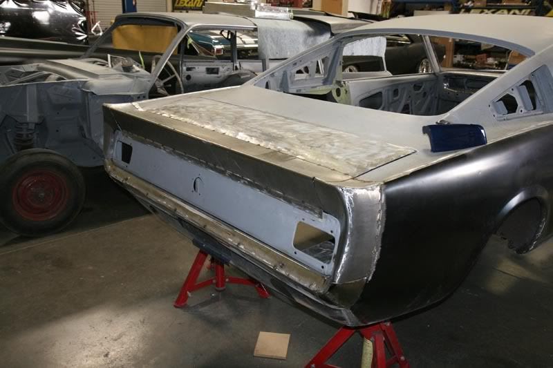 This car was a 1966 Ford Mustang GT matching numbers, yes that is right a matching number car that we are going to cut up and rework to make it look like it should have when Ford built it. This car came to us with paint done ready to go back together that is all it needed. We were going to just do a nice restore on the car and we found rust so you know what that means complete car needs to come apart and start over. If we are going to start over why not just go all out well that is what we are going to do. Every panel on this car is rebuilt or reworked in some fashion. I will post as many pictures as I can to get you all caught up and as some of you may have seen we brought this car out to SEMA in raw metal. This car was in our booth at SEMA last year in the raw stages to show the kind of work our shop does and to show everyone in this industry that we are not afraid to let people see whats under the paint. Lots of people say we cant get things done and we only bring cars to SEMA that are half done but we bring cars to the shows in stages so you can see all the metal work and how they were built. Not to mention we had 9 cars at SEMA last year on display all over the place. Check out the build pics and let me knwo what you think and if you have questions ask. http://i269.photobucket.com/albums/j...GT/Img0008.jpg http://i269.photobucket.com/albums/j...GT/Img0023.jpg http://i269.photobucket.com/albums/j...GT/Img0038.jpg heres what we found under the paint, nice work for a car that had a $10,000 paint job on it. http://i269.photobucket.com/albums/j...GT/Img0173.jpg Here are all the panels that had rust http://i269.photobucket.com/albums/j...GT/Img0539.jpg |