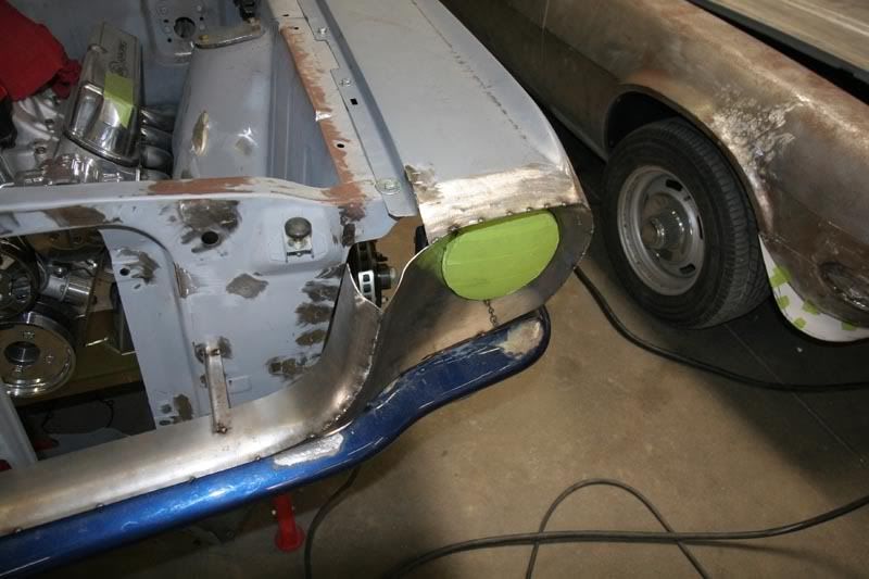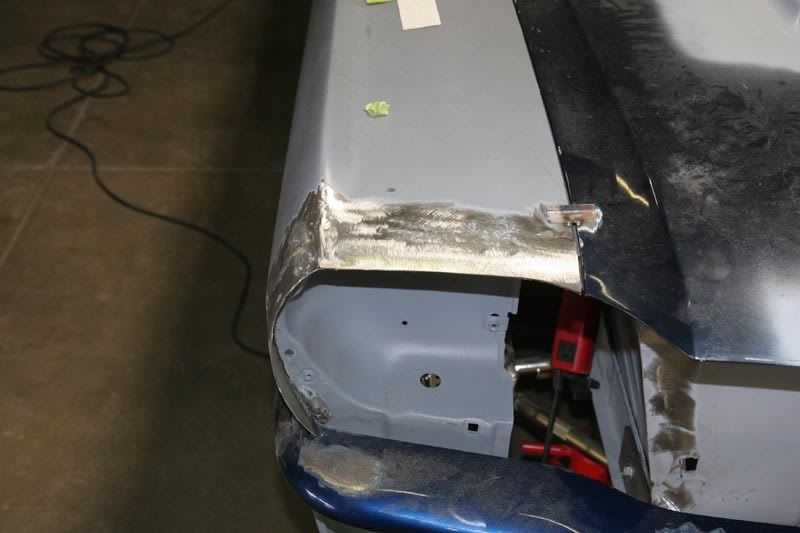 So we called up Year-one and got some replacement panels to fix the car right left and right side were bad. We cut off both quarters to do it right, as you can see by the first patch job they hacked the car up so much that it was too far gone to fix right.