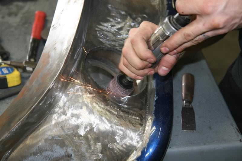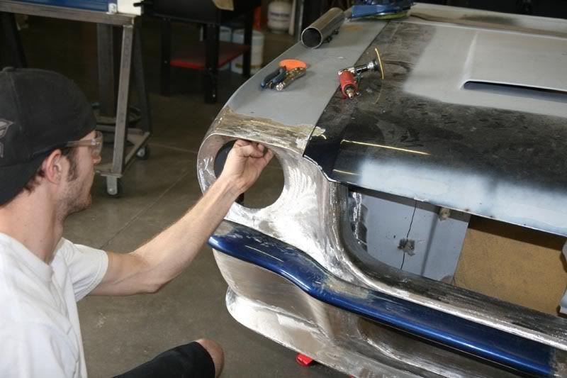 after all the metal work on the car was correct and fit perfect we sanded the complete car down to it ready to go to SEMA 07 to show the kind of work we do. We figured everyone can take cars to SEMA but we like to take a few in the metal stages so everyone can see how we build them.