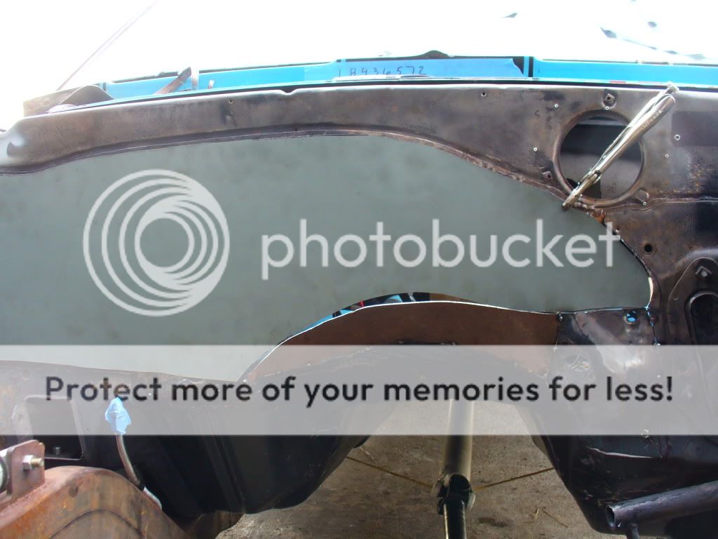 Spent all day doing sheet metal work to smooth out and close in the firewall before the motor goes back in. I forgot how tedius that kinda work is. Anyway, got the smoothed firewall "roughed" in. I'll really smooth it out over the winter when the subframe is out of the car. Tomorrow back in goes the LS1.