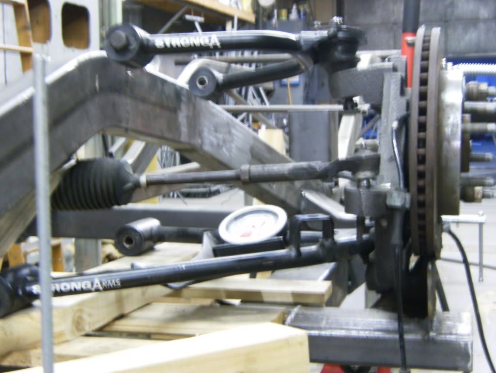 Well haven't updated due to me forgetting the camera, but I've been working on mainly figuring out my front suspension I wanted to make it perfect at ride height, and finally after moving everything upwards, motor 1.5" up i got my arms at 2* LCA and the uppers at 6* this is set at 5.5" ride height. Tire will sit right at the lip of the front tires.