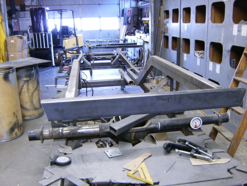 http://i83.photobucket.com/albums/j3...o/HPIM0403.jpg Everything was set just need to get the final welds in this weekend, due to being in school till tomorrow then I got the summer off. http://i83.photobucket.com/albums/j3...o/HPIM0409.jpg http://i83.photobucket.com/albums/j3...o/HPIM0407.jpg I also cut the rear frame rails down 4" I was going to run them higher but decided against it, so I plated them the same way. http://i83.photobucket.com/albums/j3...o/HPIM0363.jpg http://i83.photobucket.com/albums/j3...o/HPIM0364.jpg Also once I get my 2" Spindles in I will be able to layout the front suspension and order my laser cut brackets for that. Also got to send out my 14b to have it narrowed in a week or so. Sucked that I had to cut off all those brackets I welded up already. Oh well, plans change. |