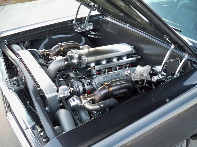 He had to trim a little and we would like to build them so you dont have to do that. We are looking at that right now to see how much it will slow them down. If you are OK with triming I will get a set out to you ASAP. You dont see the trim but its just not something we want you guys to do. Problem is you move one thing and it causes all kinds of problems. Keep in mind guys this is a one year application and we built it for you guys because of all the request. I am glad that Jody likes them and they really finish off his sick engine. I think most people will miss the hinges because of all the engine work and turbos:unibrow: |
