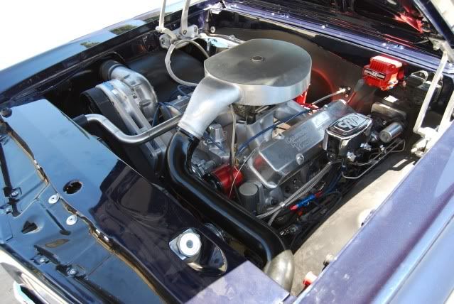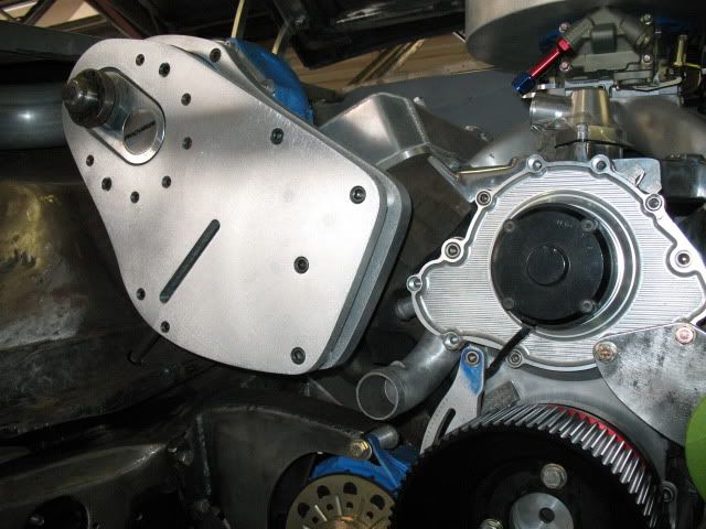 With the lack of mounting locations on the Pontiac block and since the owner wanted to run solid engine mounts, we went ahead and mounted the 220 amp alternator off of the chassis down low. The plan is to when you open the hood the only thing you see is the engine and pro-charger, we're trying to keep everything else down low. http://i55.photobucket.com/albums/g1...s/IMG_1364.jpg |