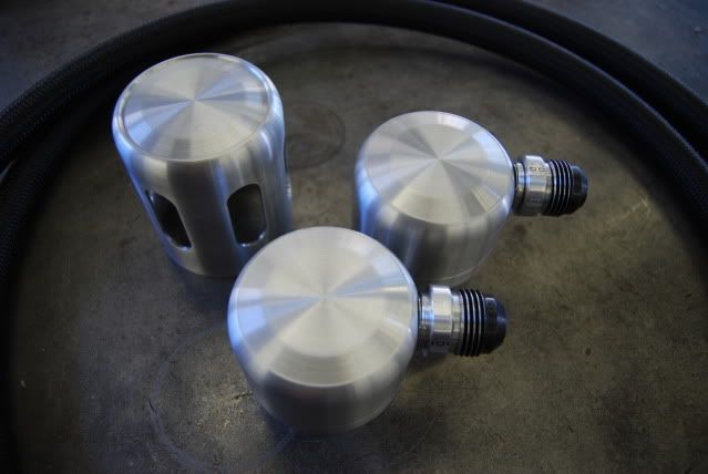 http://i55.photobucket.com/albums/g1...s/DSC_0147.jpg http://i55.photobucket.com/albums/g1...s/DSC_0145.jpg We also pulled the procharger and all of the brackets off to clean up a lot of the plumbing and wiring. We also had to repair the idler and adjuster that wasn't installed correctly. http://i55.photobucket.com/albums/g1...s/DSC_0148.jpg The owner had bought some big Moroso breathers and they looked a little tacky, so I put them in the lathe and turned them down a bit and gave the tops the same look as the hardware we machined for places under the hood. I also machined the large piece in the picture to cover the filter on the breather canister. Now I just have to route all of this huge hose somewhere that looks half decent. http://i55.photobucket.com/albums/g1...s/DSC_0163.jpg |