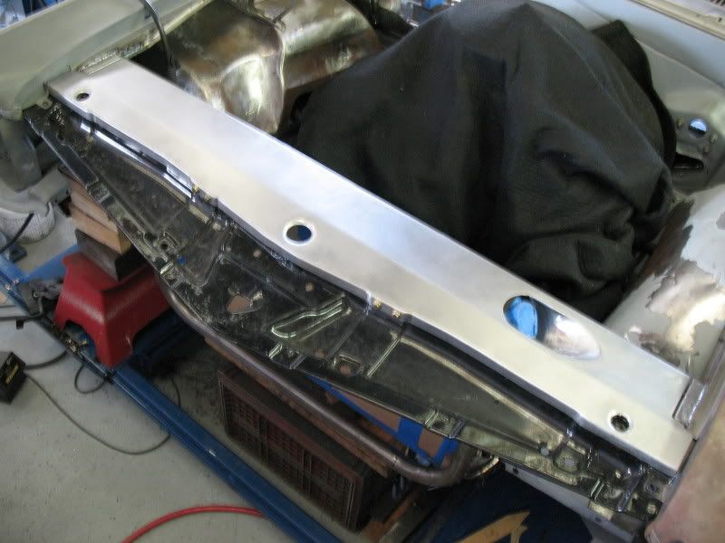 Here's some pics of some firewall modifications to accomodate the engine being set back in the car a couple inches. *The filler work was done by the previous shop and will be fixed when we get ready for paint (it's pretty thick)*