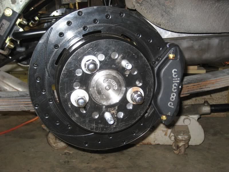 In regards to lowering her down.......after having changed so many components in the front end I wanted to see what the stance was back on the ground before I started lowering. I think with the much thicker torsion bars the car is going to ride a little higher then before so some 2" drop spindles and re-arching of the leafs may be in order. I'm still unsure what's causing the brake problem. All the fittings are tight. The lines are completely bled. Frank at Prodigy thinks it might be a bad master so I'm going to try that as soon as the new one comes in. My only other thought mildly echoes Bill's point below about the caliper run out. I purchased new Moser axle shafts and had to push new bearings on with the Wilwood backing plates. Wilwood gives a 2.36" dimension from the back of the backing plate to the axle shaft flange. If you go over that you can always shim back. The passenger side shaft had no problem but the driver's side shaft I could not get it any less then 2.45". The bearing clearly bottomed out on the press with 20T on it. When the rotor and caliper were installed the outside pad was in contact with the rotor and so the caliper isn't totally centered on the rotor and there is no way to shim that side. After having driven a little this weekend the black coating on the driver's rear rotor is still only 1/2 worn off as opposed to the other 3 rotors where it's completely worn off. I'm beginning to wonder if this is what's causing my problem. The brakes are very solid, especially after 1 or 2 pumps......there's hardly any pedal travel. But if you don't push the brakes for say a few miles and then step on them........you have to pump them once or twice to get good pedal. |