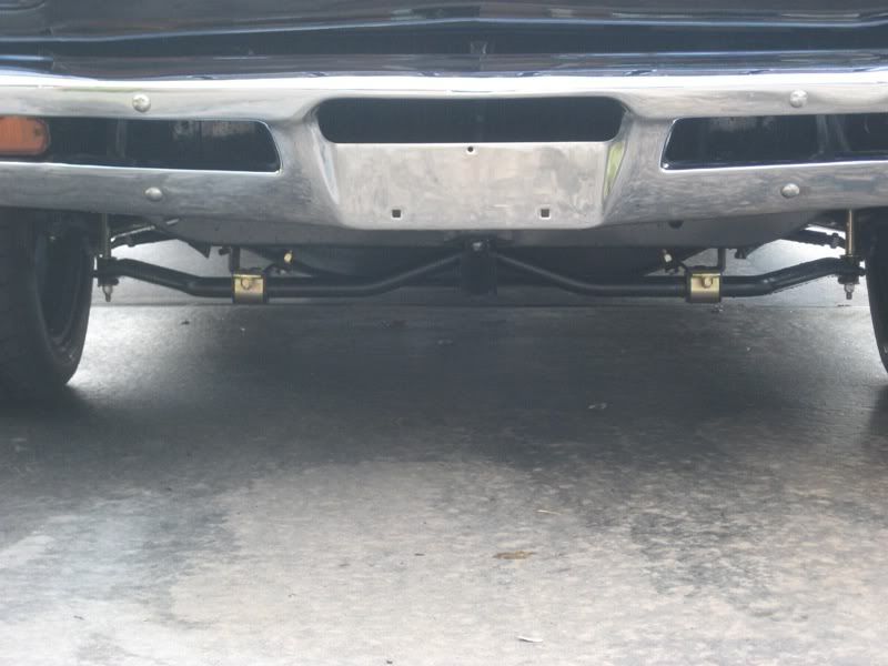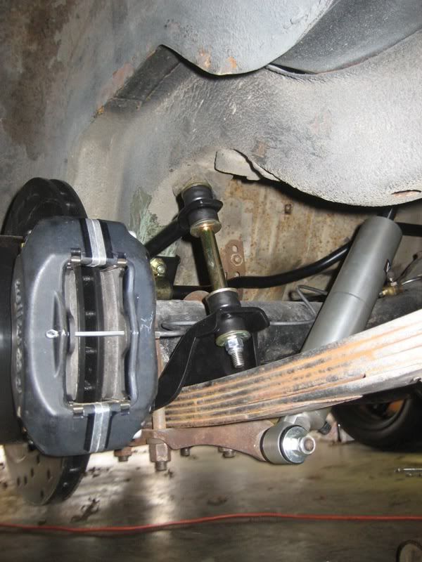 Picture of the 6-piston Wilwood front caliper installed. http://i304.photobucket.com/albums/n...Rebuild049.jpg Close up. http://i304.photobucket.com/albums/n...Rebuild051.jpg From the front of the car looking at the complete new front setup. http://i304.photobucket.com/albums/n...Rebuild050.jpg New 1-1/8" Firm Feel front sway bar. |