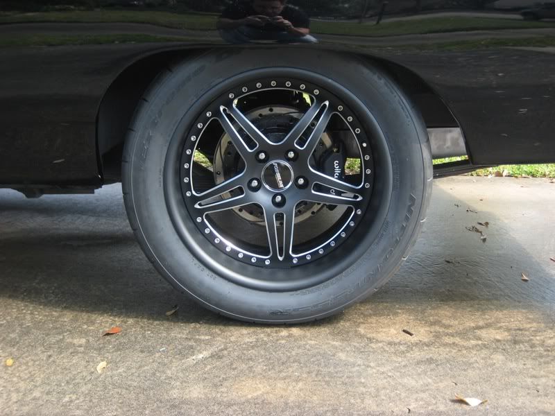 In trying to install the Wilwood rear disc brakes I discovered that the stock rear 8-3/4" axle shafts were not cut to the most exacting standards. The passengers side caliper fit but wouldn't center.....it was off by .015. The driver's side was even worse.......it was off by .125 which wouldn't work at all. After much debate and discussion amongst 3-4 engineers we decided it better to order new axle shafts then to try and machine enough off the stock shafts to make fit. So it was time to make a quick call to Moser and order some new axle shafts. Once I got the new shafts & bearings in it was funny how much better the Wilwood kit fit. I got all the rear calipers installed, the hard lines run, and the brake system bled. http://i304.photobucket.com/albums/n...build002-1.jpg http://i304.photobucket.com/albums/n...Rebuild005.jpg So now with everything done that I originally set out to do it was time to get to the step I've been anticipating for a while.......the wheels/tires. As I'm sure most of you do.......I spent a TON of time trying to figure out the look I wanted for my car. I knew that I liked the monochromatic black look but wasn't sure about doing the black flat to match the Mopar hood. After quite a bit of discussion with Jon at Driver's Inc we decided it would be a great look if I diamond-cut the edges to give the rims some depth. http://i304.photobucket.com/albums/n...Rebuild008.jpg Forgeline SS3Ps with Nitto N555 tires. 255/45/18s on the front and 305/40/18s on the rear. http://i304.photobucket.com/albums/n...Rebuild007.jpg And the obligitory money shot http://i304.photobucket.com/albums/n...Rebuild006.jpg I really would like to thank Jon for all the discussion and thoughts on what would/wouldn't work in terms of the wheels. I honestly could not be happier with the way they turned out. |