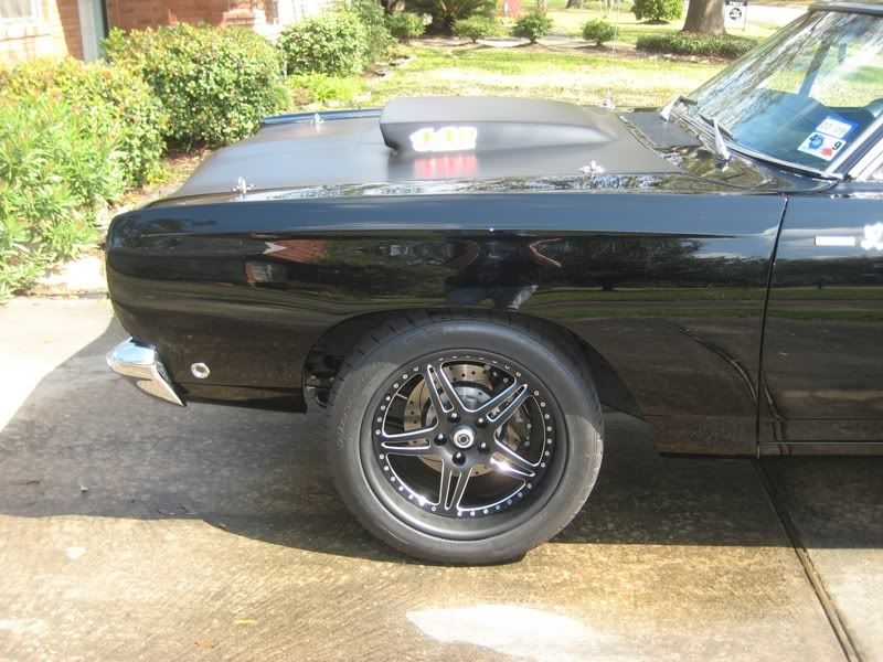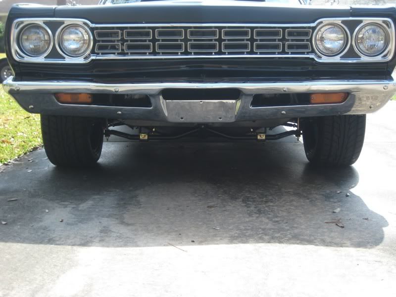beautiful car! are you going to drop it any? i can suggest fat man customs drop spindles. i have them on my duster,nice units. i have a 1969 gtx clone myself that is in pieces. maybe i will finish it one day. great start on your car!:thumbsup: