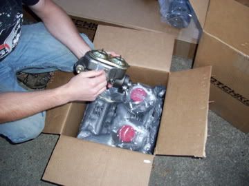 Look at that pile of parts next to the soon to be molested Grandma car! http://i256.photobucket.com/albums/h...s/100_0339.jpg Just like Christmas morning! http://i256.photobucket.com/albums/h...s/100_0342.jpg Getting some progress http://i256.photobucket.com/albums/h...s/100_0350.jpg Here's a funny comparison. The new rotors are a hair smaller than the original hubcaps! http://i256.photobucket.com/albums/h...s/100_0349.jpg |
