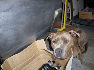 http://i256.photobucket.com/albums/h...s/100_0346.jpg You know about junkyard dogs, well Dozer is the shop dog. It took a little getting used to being on the ground with a handful of tools and having him walk up and lick your face but Doze' and I are cool! http://i256.photobucket.com/albums/h...s/100_0345.jpg Check out the old meets new replacement parts comparison. The Hotchkis TVS system is so complete and so slick. I can't wait to get behind the wheel with the new parts. It won't even feel like the same car. http://i256.photobucket.com/albums/h...s/100_0355.jpg http://i256.photobucket.com/albums/h...s/100_0356.jpg |
