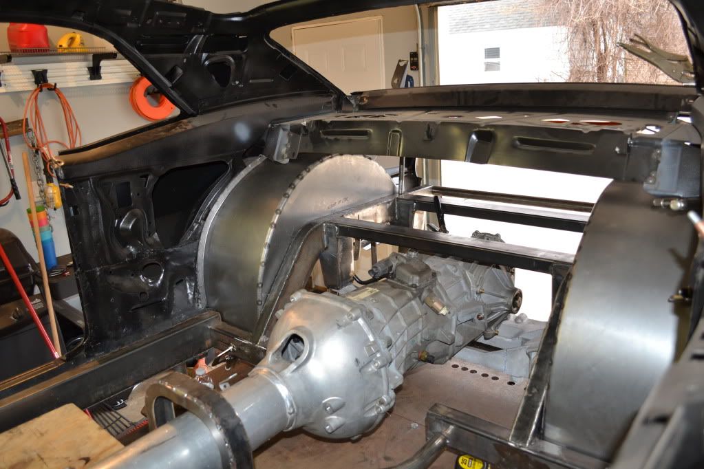 treatment on the rear? 21 Century years ago did one of these and they wanted to keep the tires under the stock fenders. They ended up narrowing the cradle 3 or 5 inches, I can't remember, and having new half shafts made. They also took the trans off the rear and made an adapter for a standard drive shaft. I like that you are keeping the trans mounted in the rear.