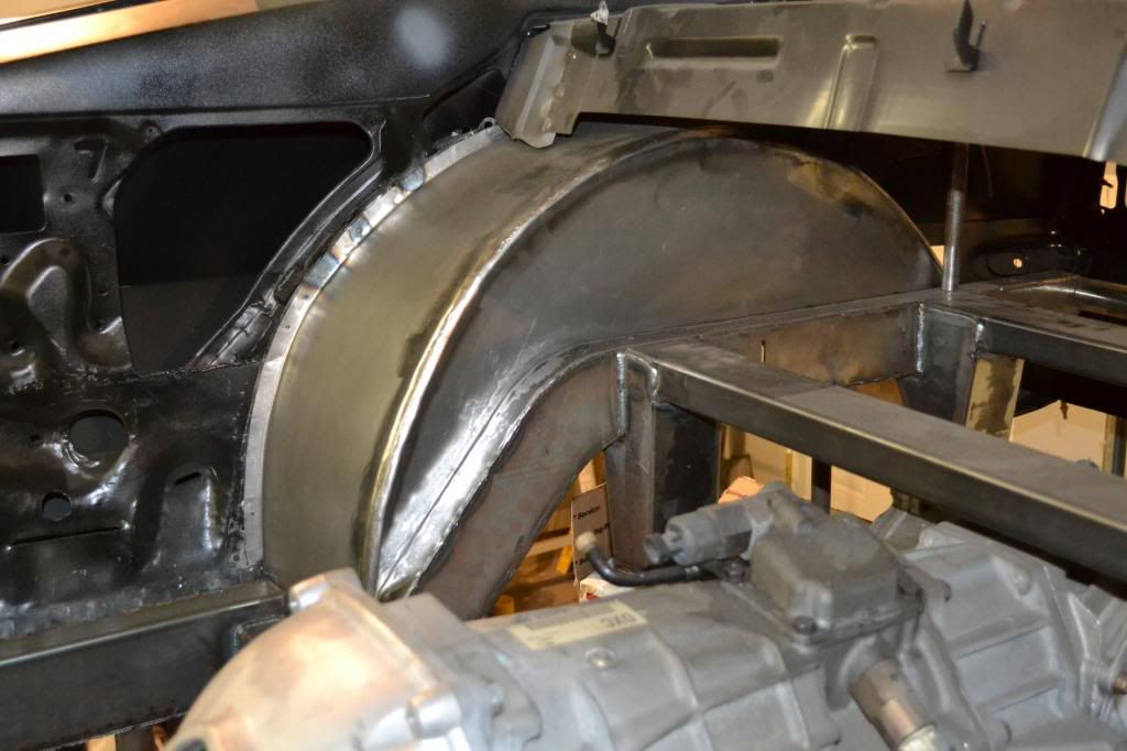 Yep I remember seeing their rear clip. This is my design. Its the stock width cradle and stock width of half shafts too. I plan on flaring the fenders in the rear to account for the wider track. I will be running aftermarket wheels. The front is wider than normal as well and I worked with Art Morrison on the front to get everything to match up wheel wise between the front and the rear. The rear is a little wider than the front but I can make up that with the rim width.