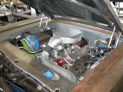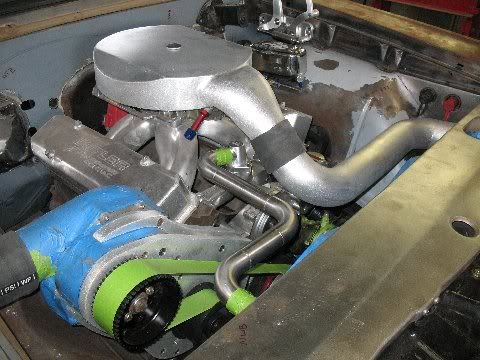 GTO chassis. Car is being blocked right now at the paint shop. The owner wanted to work of the stock chassis with bolt on suspension as his Mom is the second owner of the car and he wants it to look mostly stock on the outside. http://i55.photobucket.com/albums/g1...s/IMG_1274.jpg http://i55.photobucket.com/albums/g1...s/IMG_1288.jpg Here's the work under the hood. I did all of the machine work, aluminum work and sheetmetal fab in house. http://i55.photobucket.com/albums/g1...toms/web17.jpg http://i55.photobucket.com/albums/g1...toms/web16.jpg http://i55.photobucket.com/albums/g1...kbluefinal.jpg |