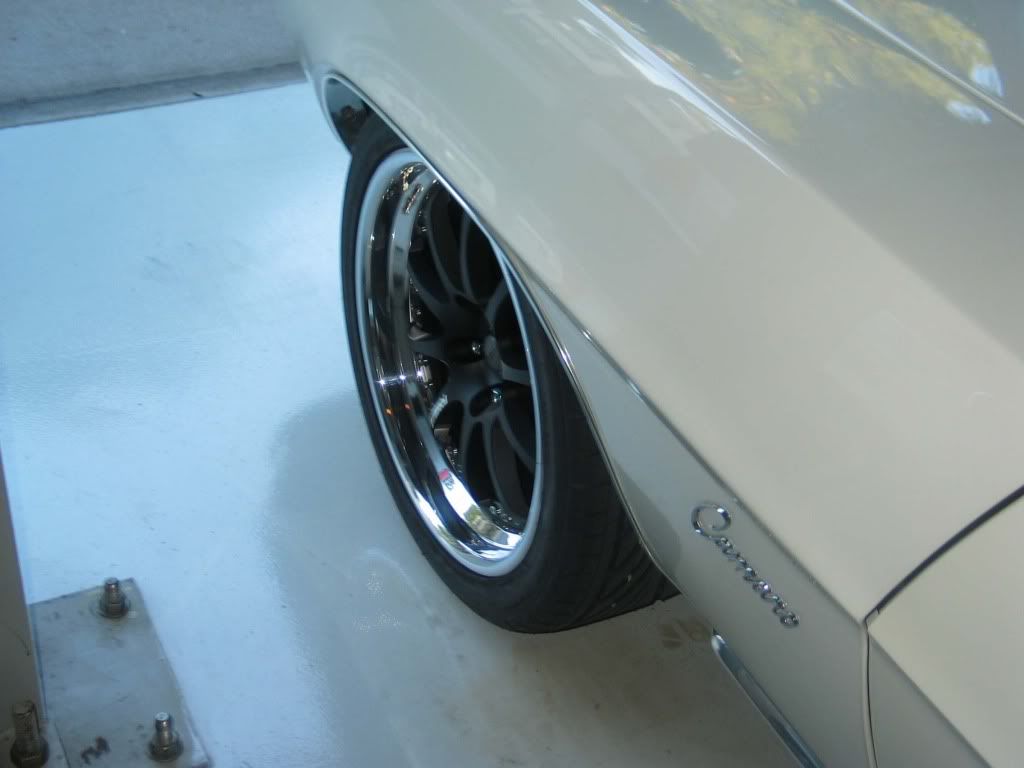 That center cap is sweet too. Good choice with your color car too. Good job Frank staggering the rear backspace to match the car being off-center. We've done that a few times too. :thumbsup: |