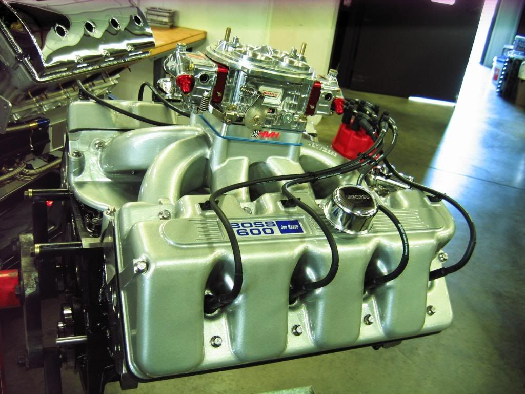 This is the Jon Kaase built Boss 600ci going into the car.It will be dyno'd and shipped to the builder next week.Kaase believes it will dyno out at 1000 to 1100 N/A horsepower on pump gas.