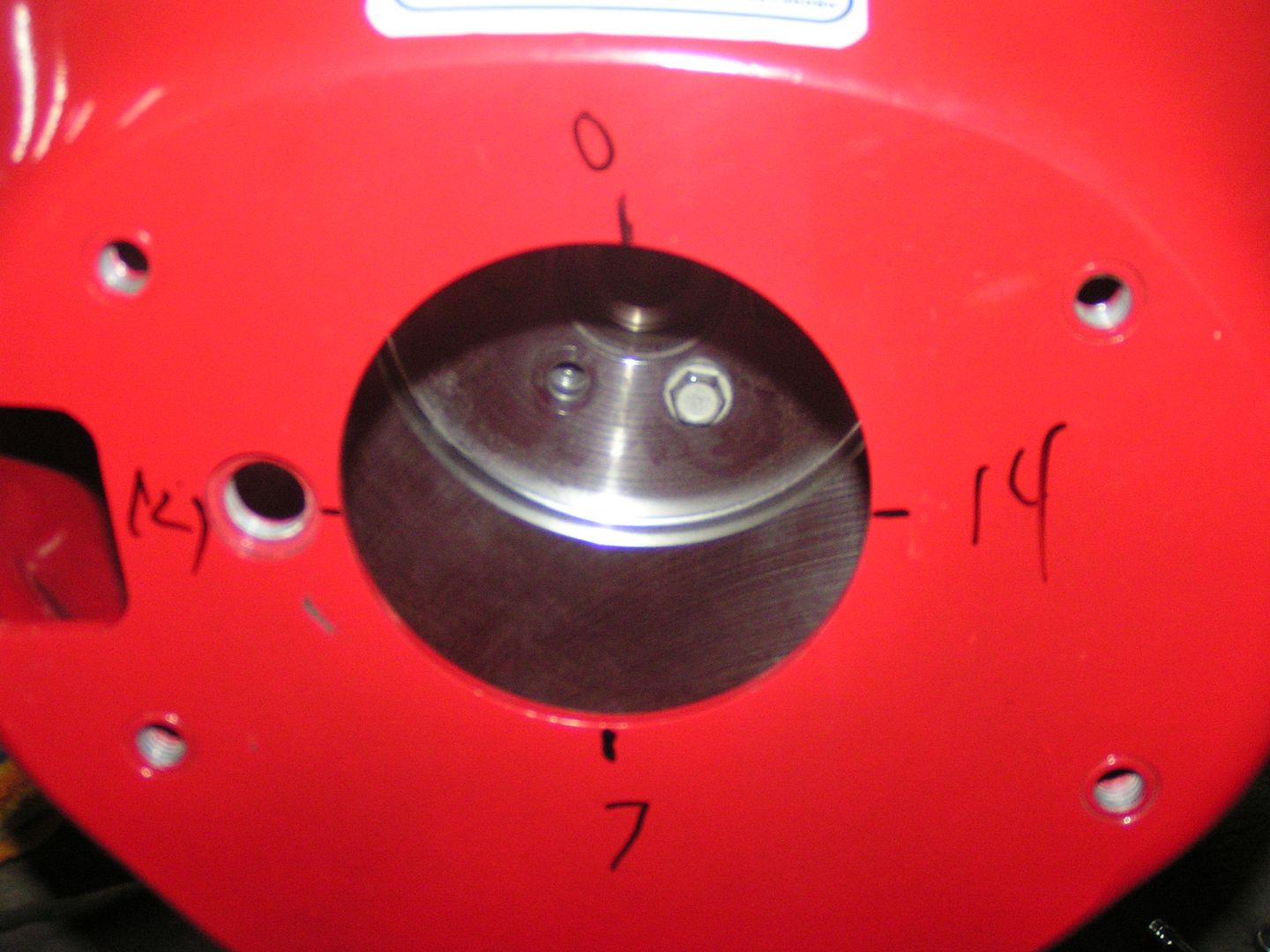 I know I had another thread started, but wasn't sure if anyone would look at it so I started another one. Just wanted to make sure this looks right. Unfortunately I my scattershield didn't have all the nuts with it so I have to wait until the morning to get them and tighten everything down. I got the dial indicator and base mounted and it looks to me like it will do the job. Hopefully I have it right. From this point what I understand is I need to zero the indicator, turn the engine to the 4 marks (every 90 degress) and get the readings. My dial indicator reads in 0.001 so what would be my acceptable readings?? Any advice would be great. For those that are also in this situation, once I have it all figured out, I will post a thread on how to do it with lots of pics. Thanks in advance.