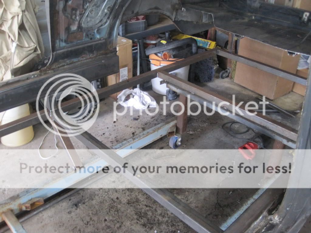 Going up on the Fab Table: http://i814.photobucket.com/albums/z.../100212142.jpg http://i814.photobucket.com/albums/z...2-12135417.jpg http://i814.photobucket.com/albums/z...2-12135453.jpg Perimeter rail installation begun: http://i814.photobucket.com/albums/z...2-18133529.jpg Floors marked: http://i814.photobucket.com/albums/z...2-18133511.jpg 3" section removed in order to insert the rail, but keep the car sqaure until it is tack welded down to the table: http://i814.photobucket.com/albums/z...4-18143834.jpg Next, clean up the actual area where the perimeter rail will be welded to the car, tack weld to the table at ride height, and remove the rest of the floor... We'll see how much time I get in the next few days/weeks.. |