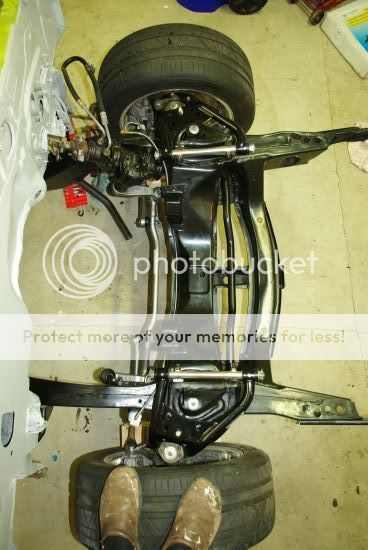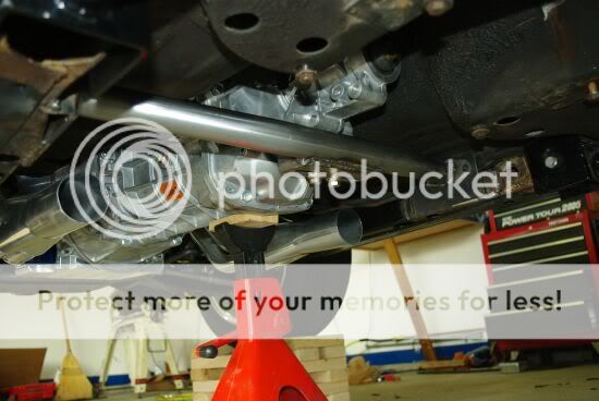 First step to the crossmember installation was to relocate the emergency brake pull cable from inboard side of drivers side subframe to outboard side. Used a Lokar Universal emergency brake cable that originally was purchased for the Kore 3 C5 brakes, but now I rerouted for crossmember clearance. Worked out so nicely I realized it should have been done this way from the beginning. Area cut from http://i590.photobucket.com/albums/s...g66/LS3002.jpg Outboard relocation http://i590.photobucket.com/albums/s...g66/LS3003.jpg http://i590.photobucket.com/albums/s.../ebrake002.jpg Now for the crossmember. I welded some plates which extend from the frame up to just below the floor. My decision for this was for two reason, 1st being this put the crossmember high enough for a direct exhaust shot rearward from the headers. Should keep the pipes tucked up neatly to the bottom of the car. 2nd, having it up this high gave me access to drilling holes and using 1/2 bolts from the inboard size and while able to access the nuts on the backside of the plates. Should make future installations and removals easier leaving this main part as a bolt in. I'm very happy with how this turned out, especailly for the price. http://i590.photobucket.com/albums/s.../Camaro017.jpg http://i590.photobucket.com/albums/s.../Camaro015.jpg |