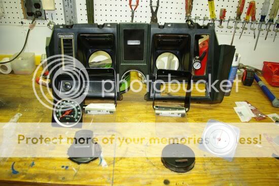 As most of you know, LS motors have an electronic output from the harness to pulse an electronic speedometer and tach. I wanted to keep the original dash though and try to make it look as original as possible. I'm very satisfied with the outcome. First picture represents the removal of the bezels which hold the gauges in and house the blinkers/idiot lights. Stripped these down and used my dremel to carefully remove just the clear portion of the lens without cutting into the black portion. I also used the dremel to cut out the awkward shapes on the back side of the dash which mirrored the back side of my factory fuel gauge and speedo. I needed to create smooth places for new mounting plates. http://i590.photobucket.com/albums/s.../Camaro007.jpg Backside http://i590.photobucket.com/albums/s.../Camaro008.jpg Once this was done, I took my gauges to a buddy with a machine shop and had him trace and duplicate the flat portion of each gauge from aluminum to create new mounting plates. http://i590.photobucket.com/albums/s.../Camaro009.jpg Once these were painted flat black and I resprayed the bezels, walla!!!! I'm really happy with the stealth look. http://i590.photobucket.com/albums/s.../Camaro020.jpg |