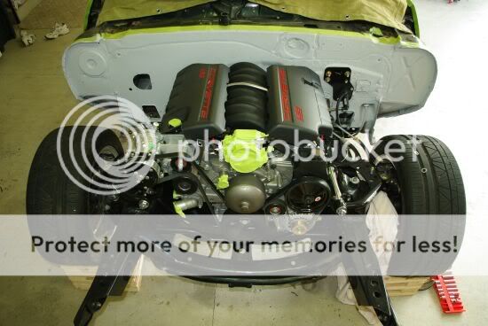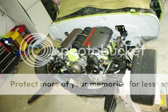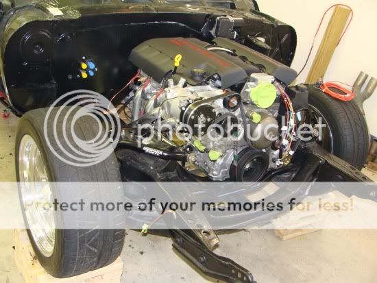http://i590.photobucket.com/albums/s...g66/LS3027.jpg The satin black I sprayed on the inner fenders and core support. http://i590.photobucket.com/albums/s...g66/LS3028.jpg Getting the front back on is a little of a milestone for me, a light at the end of the tunnel for sure. http://i590.photobucket.com/albums/s...g66/LS3037.jpg Now for the buzz kill, and would sure welcome some opinions as well. After filling the motor with oil a few weeks back, a couple of times I have wiped some drops which were hanging from the bottom pan. I surely haven not come this far to have a freakin oil leak, so I'm a bit bummed. Leaking with out running? Doesn't make sense to me. There are two bolts on the backside of each corner of the pan, and they appear after a few days to have a droplet hanging from them. ARRGGHHH? Anyone else experienced any problems with this? It's a brand new gasket, autokraft oil pan, and the bolts appear to be tight. It only happens when I take the car down off the DSE stands, dropping the rear of the car first, which in theory tilts the motor back. It's only after this procedure I ever notice the oil, so I guess it's a problem at the rear of the pan? http://i590.photobucket.com/albums/s...g66/LS3029.jpg I'm not sure what to do next, so I welcome any input or ideas. |