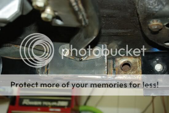 http://i590.photobucket.com/albums/s...num_select.jpg http://i590.photobucket.com/albums/s...6/Sep09009.jpg I used the car shop 1" set-back plates, and even reduced the set-back by 1/4" by re-drilling the plates. I didn't redrill just to avoid the tunnel modification, but was trying to eliminate the need for notching the frame as well. Didn't work obviously cause I had to notch the frame ever so slightly. Probably could have raised the motor a little bit, but that makes getting the driveline angles more difficult with a factory tunnel and the height of a T-56. Another item I ended up having to re-address was the steering box hitting the Hooker Headers. Attempting to drop in the motor in for the last time I came to realize the headers were making too much contact. Contacted Frank and he set me up with DSE's 600 box. This netted me a little more room, but I had to dimple the headers still, but only a slight amount. Frank gave me a quick tip of using a large socket and felt pad between, then struck with hammer on the socket to create a clean dimple. Worked out great, and a big "Thanks" to Frank for the idea. http://i590.photobucket.com/albums/s...irewall017.jpg http://i590.photobucket.com/albums/s...g66/Jan006.jpg |