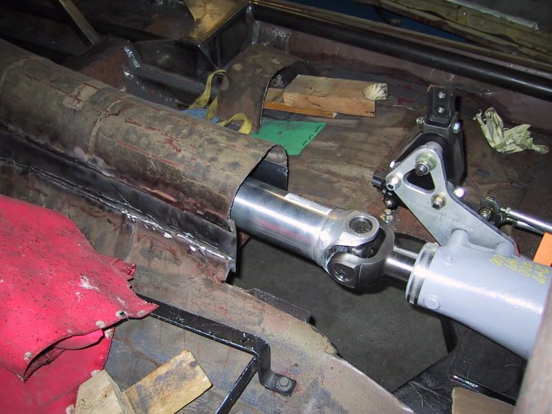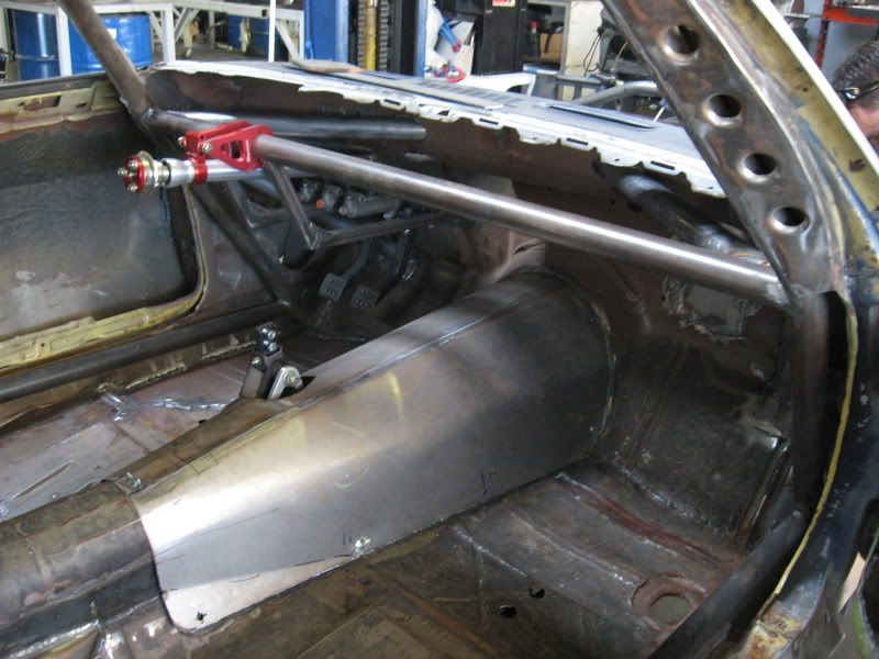 With the car being so low, less than 3" off the ground, and the drive shaft and rear end higher than stock, we had to fabricate the transmission tunnel.