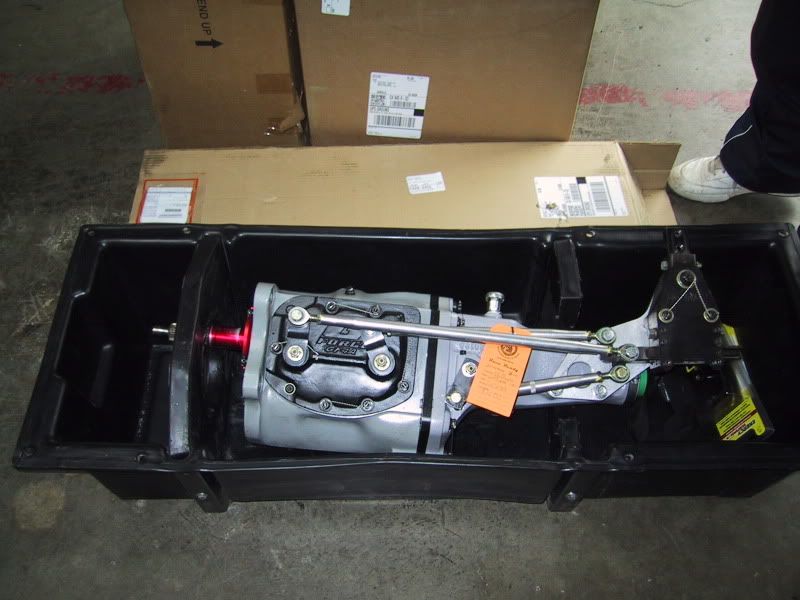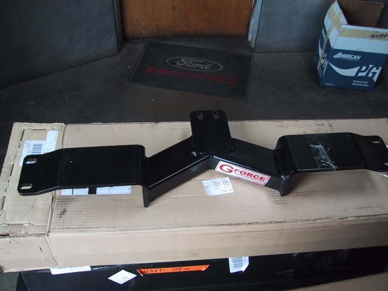 Here are photos of the G-Force Transmission, Competition Gears 3rd member, G Force crossmember, and Edelbrock LS headers.