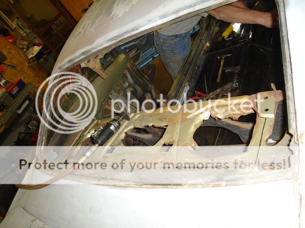 Again, cutting more metal off of the car. The car started life with a vinyle top which was not so nice to the tulip panel and window channels.