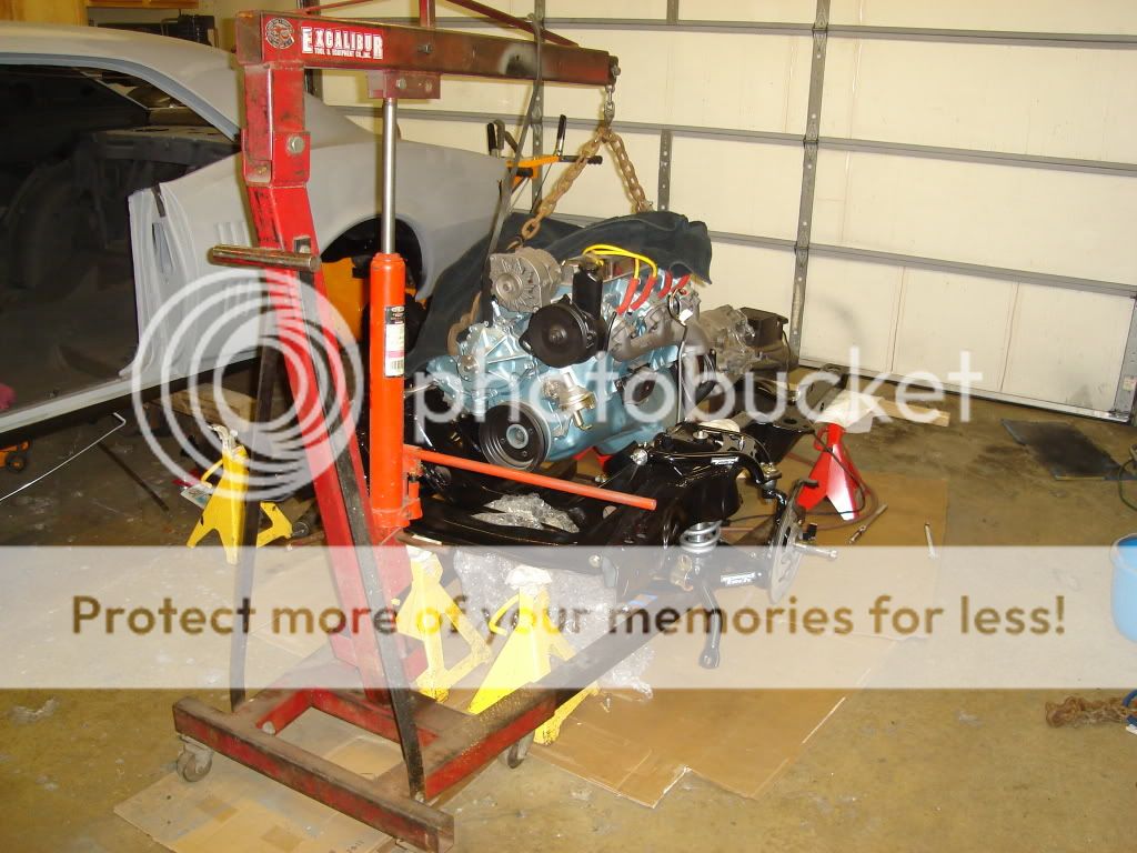 http://i319.photobucket.com/albums/m...y/DSC07002.jpg Installed the QA1's and spindles everything is a little dirty from sitting in storage for so long. http://i319.photobucket.com/albums/m...y/DSC07003.jpg Tackled the motor and tranny by myself. Just had to be a little more careful. http://i319.photobucket.com/albums/m...y/DSC07004.jpg All bolted in and ready to go into the car. http://i319.photobucket.com/albums/m...y/DSC07005.jpg |