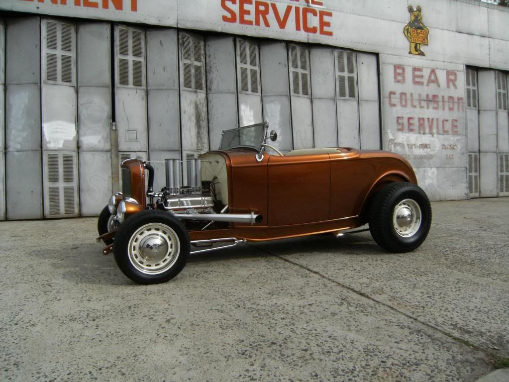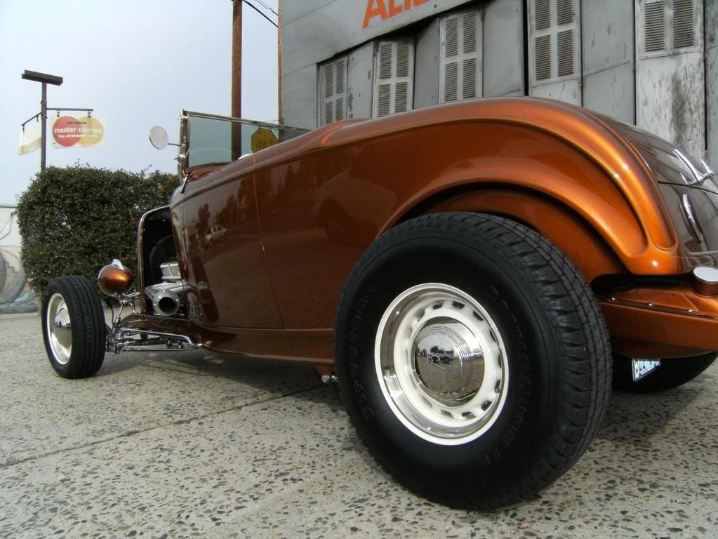 Take it from a guy who beat his head against a wall about this very same problem on my old 32. My car was a very old school looking, car, with velocity stacks, hilborn, 40 ford steering wheel, and SoCal drilled front, etc. I ended up going with some cream powder coated Artillery wheels from The Wheel Smith. I'll post some photos for you. I knew going this route, I would have to run an "old school" looking tire, but I did not want the bias ply tires or Coker tires, I wanted a radial. SOOO, I went with Firestone "Destination LE's" in the rear, used black tire paint to get rid of the white letters. Sidwalls were otherwise very smooth, and fit the look, but now I had a radial tire that behaved a bit better on the freeway. I used a Firestone front tire, 195 wide as well. In hind sight, I would have rather put a set of NewGen Thrashers in polished on the car, in 15" front, and 17" rear. I think that would have looked better. It sounds like with the jag rear, etc, on your car, a set of understated, polished 5 spokes will fit your car. Go that route, and you'll be happier about it in the long run I think. Good luck, I'm a wheel guy... and do it for a living, and I even made the wrong decision on these. I mean, the Artillery wheels didn't look bad, I just think the 5 spokes would have looked better. http://i37.photobucket.com/albums/e9...d_Roadster.jpg http://i37.photobucket.com/albums/e9..._Roadster2.jpg |