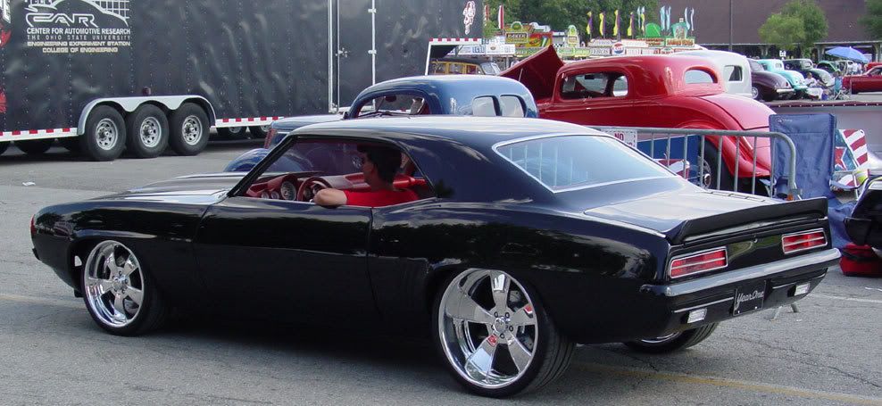 At thi syears Goodguys Ohio "i think" there was a black 69 on Intros wearing 22" with Red custom interior. i love the way he did hes interior and engine bay :hail: Ricochet posted some pics of the event> thanks does anyone have more pics or info on who did the interior, engine bay etc Want to do the 68 in a similar style :thumbsup: |