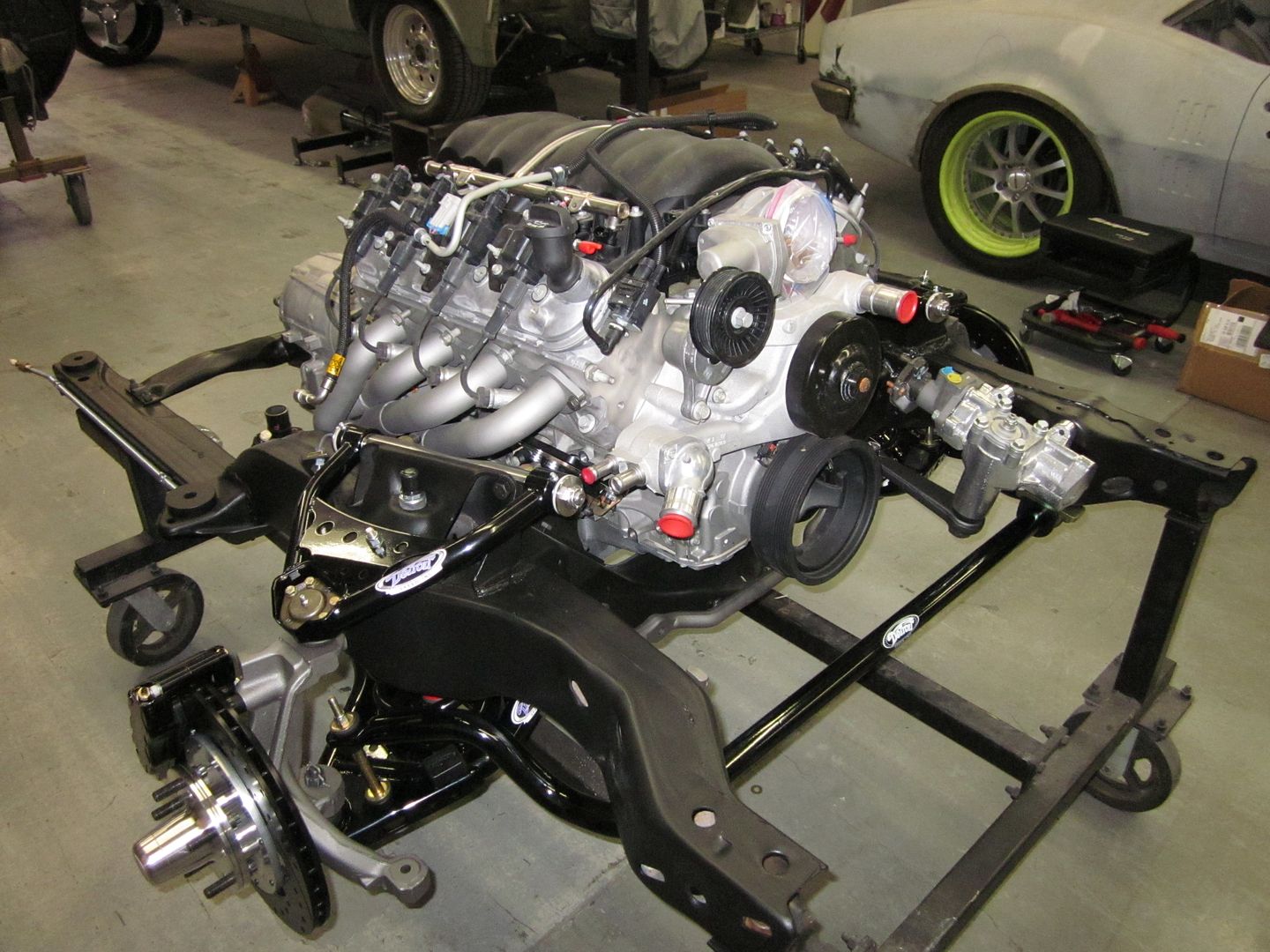 I got my motor in this week from Cleveland Pick a Part for a 71 Camaro we have been working on here @ the shop :D... We just got the motor loaded between the frame rails.. We will be loading the sub-frame on the body to see where we will be having to cut the transmission tunnel. We will start the design of new motor mounts mid next week with trans support.. Got some new suspension ideas coming for this build!!