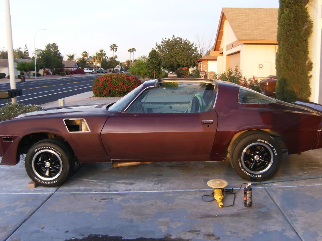 The car is a 1980 Camaro Z-28 that I bought for him about 8 months ago (he used to own one in the 80's). I painted it the color of his old car and now we are working on building the engine for it. It will have a 5.3l LM7 out of an 04 Tahoe. Plans for the engine include and LS6 cam, LS6 intake, a set of 317 heads milled .030 off an LQ4 (w/LS6 springs), and flat top 4.8l pistons all over a stock bottom end. We are hoping to just about double the factory 190hp with this combo. It will have a 4L60E out of a 2001 Camaro behind it with a little stall in the converter. The idea is to have a factory appearing 80 Z-28 with modern drivability and power. Let us know what you guys think of the car and the progress so far. All criticism is more than welcome! The day I got it; http://i270.photobucket.com/albums/j.../14July092.jpg http://i270.photobucket.com/albums/j...14July0915.jpg http://i270.photobucket.com/albums/j.../14July094.jpg http://i270.photobucket.com/albums/j.../14July095.jpg http://i270.photobucket.com/albums/j.../14July097.jpg |