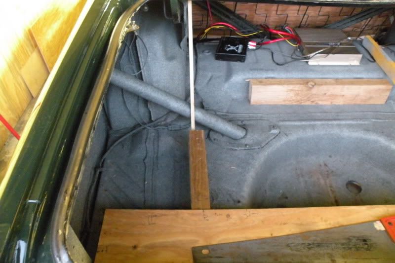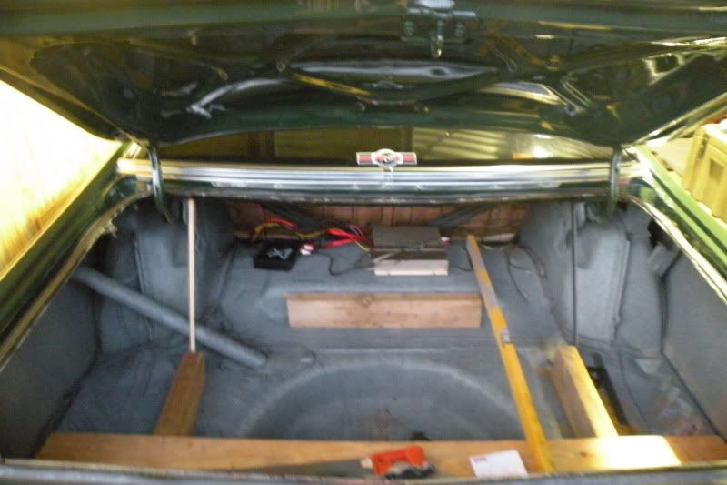 The boot goes a fair way back under the rear parcel shelf so I am thinking of using the space for storage, jack, tools etc. Mocked up a false floor and worked out what angles to use. Still striking some problems with the fuel tank filler tube. Need to work out if the side panels are going to be vertical or slope in toward the wheel recess. http://i75.photobucket.com/albums/i2...A/DSCN7025.jpg http://i75.photobucket.com/albums/i2...A/DSCN7024.jpg This is close to what I have in mind, http://i75.photobucket.com/albums/i2...th_dusters.jpg Other than using the sides of the boot for storage (limited in size) I also like the idea of the exposed spare wheel. I still need some room for a smaller single sub box as the twin 10" subs will get the flick. Any suggestions welcome. |