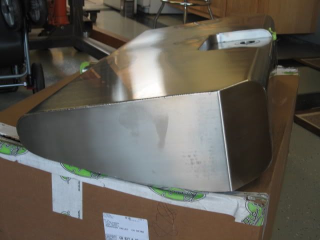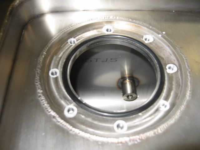 just got the ricks tank delivered today!!!! its beautiful to say the least. i needed a custom tank that was shorter in order to clear the watts, and although i wanted to do a dual pump, internal surge tank, this should be more than adequate for spirited driving and autocrossing. hector sold me on the new design which includes an internal sump and check balls (last we spoke this was going to be a regular option). there is one checkball on each side, and one at the back. the sump is sealed on the front, back, bottom and sides, with the top 1/4" open to allow fuel to flow back into the tank when the sump is full. it also has an internal bosch pump with -8 fittings which will be more than i need for now.