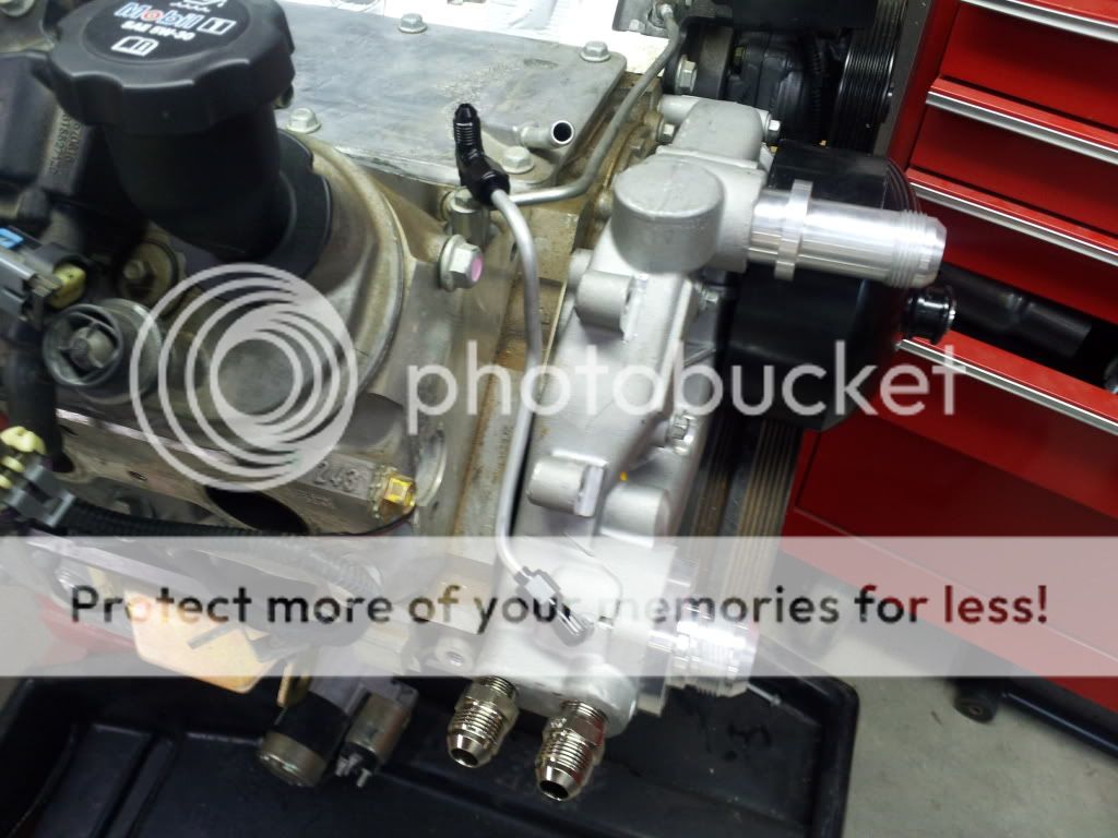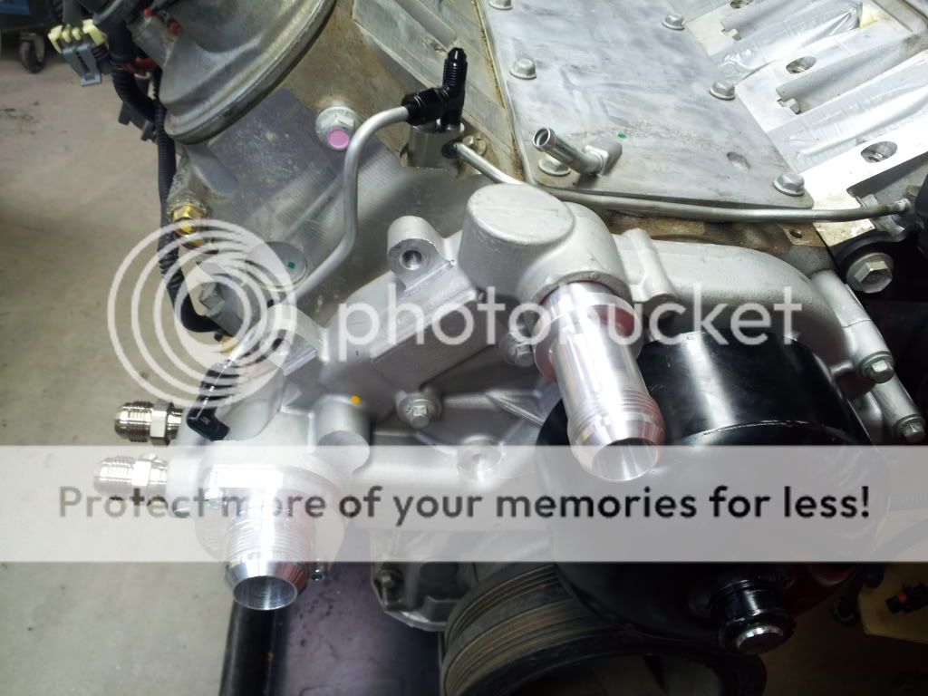 Got my Vaporworx tank all setup with the fuel pump module. I was going to modify a stock fuel pump wiring harness myself but in the interest of time just bought one ready to go from CarlC and I'm glad I did. Carl did an excellent job designing the whole Vaporworx setup: http://i886.photobucket.com/albums/a...7-01203305.jpg I'm planning on all AN fitting plumbing with teflon hose so I modified my Vintage Air heater line fittings for this. Still don't know how I'm going to connect to the heater control valve. Anyone know of an AN equipped heater control valve that'll work with the VA kit? http://i886.photobucket.com/albums/a...7-01203322.jpg Next was my clutch pedal linkage. I bought the DSE clutch master mounting bracket and shortened the clutch master pushrod and threaded the end for a 1/4" rod end just for the adjustability. I went round and round about the best place to connect the pushrod to on the clutch pedal arm. Probably not necessary but I ended up welding the original hole up and drilling another one for what I thought was a slightly better angle on the pushrod. I also made a pedal stop and a mount for a clutch switch. Still need to put a little plate or something on the clutch pedal arm to actuate the switch. http://i886.photobucket.com/albums/a...7-01203410.jpg Then I had to do something for a steam line. I didn't want to go all the way to the radiator with it so I first cut off the nipple that goes to the radiator and welded up that hole on the driver side. I then drilled a hole in the top of the passenger side of the line (drilled a small pilot hole in from the bottom first so it was centered) and tapped it 1/8 NPT for the AN tee that I screwed into it. I decided on the tee so I could cap the top fitting and use it as an air bleed when filling it with coolant. I then bent up a new line that I ran down to the heater core return side of the water pump as this is where it goes on my Trailblazer SS. I also removed the heater hose nipples with a little map gas heat and tapped the holes for the pipe thread to AN adapters. I got the radiator hose AN fittings off eBay from a company called Custom Built Motors. Seem to be nice pieces but the upper one presses in and not sure I could get it out again without damage if the water pump needed to be replaced. http://i886.photobucket.com/albums/a...7-16225546.jpg http://i886.photobucket.com/albums/a...7-16225637.jpg |