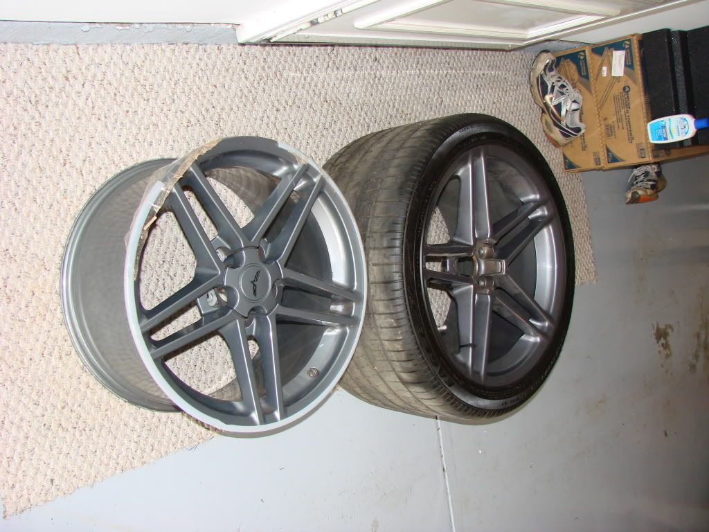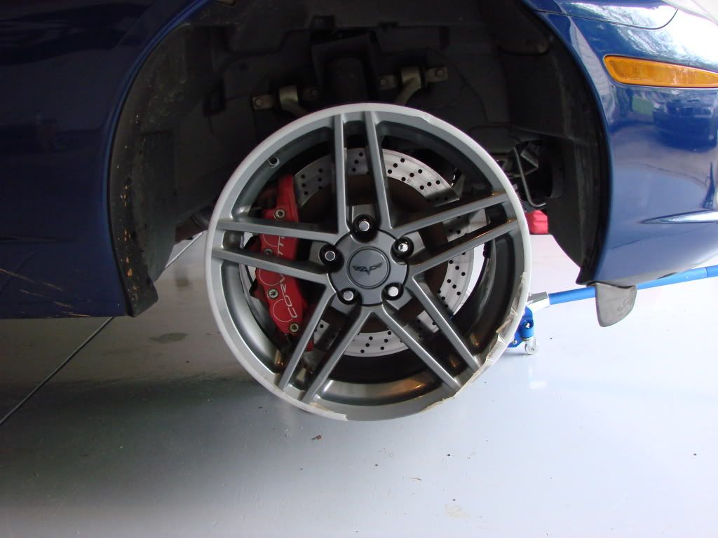 So I decided to pull the rear Z06 wheels that I've had in storage out and bolt them onto the car. First I just wanted to see how it would look, second I wanted to make the car moveable, and third - get the car of floor jack and jackstands. I bought a set of rear Competition Grey z06 wheels probably 2 years ago now, RPO code Q44, and they had some stock runflats on them. They are in decent shape and I'll probably get a summer of driving out of them. So this solves my popped rear tire issue, but now I have mismatching wheels - I found a front wheel for 100 bucks on ebay last year, so I decided to put that on the front as mockup and see how it will look. I like the look - plus this puts me 1 step closer to putting the z06 wide body kit on finally. Oh - and I have a line on the last front wheel - I am going to call and order it Monday. Last time the guy quoted me $150 for the wheel shipped, while thats not bad I may have to get it painted to get matched - I'll find out when I get the wheel. Now for the pics: Screwed rear KDW: http://i305.photobucket.com/albums/n...e/DSC06189.jpg 325 width vs 285 width http://i305.photobucket.com/albums/n...e/DSC06187.jpg Both wheels for mockup: http://i305.photobucket.com/albums/n...e/DSC06193.jpg Rear mockup: http://i305.photobucket.com/albums/n...e/DSC06195.jpg Front Mockup: http://i305.photobucket.com/albums/n...e/DSC06202.jpg Side shot of both wheels: http://i305.photobucket.com/albums/n...e/DSC06203.jpg |