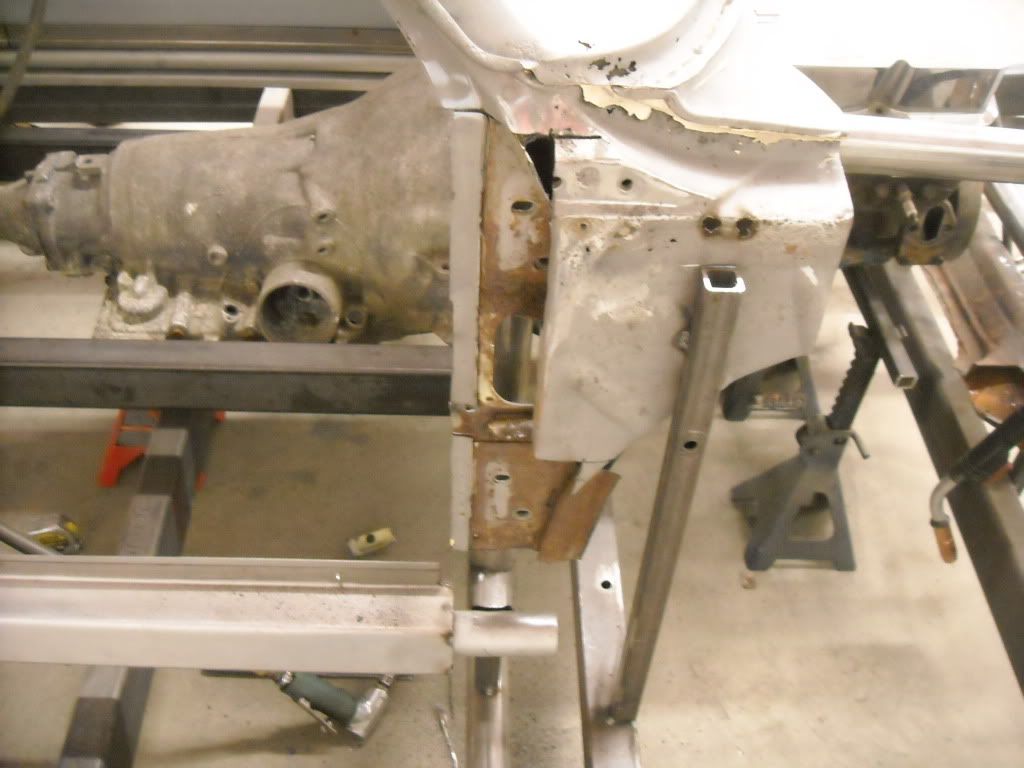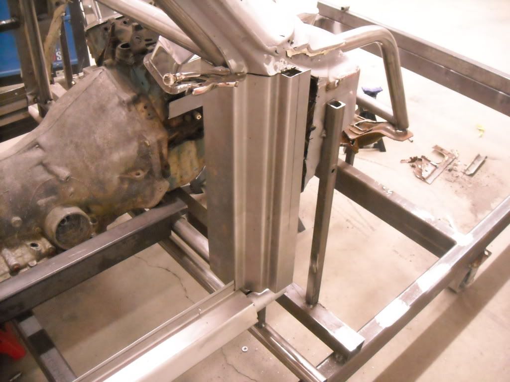 Today we finished the rear frame rails. We started on the new door hinge mounts and the lower A-pillars. I;m still trying to decide on which type of front suspension to use. DeWayne