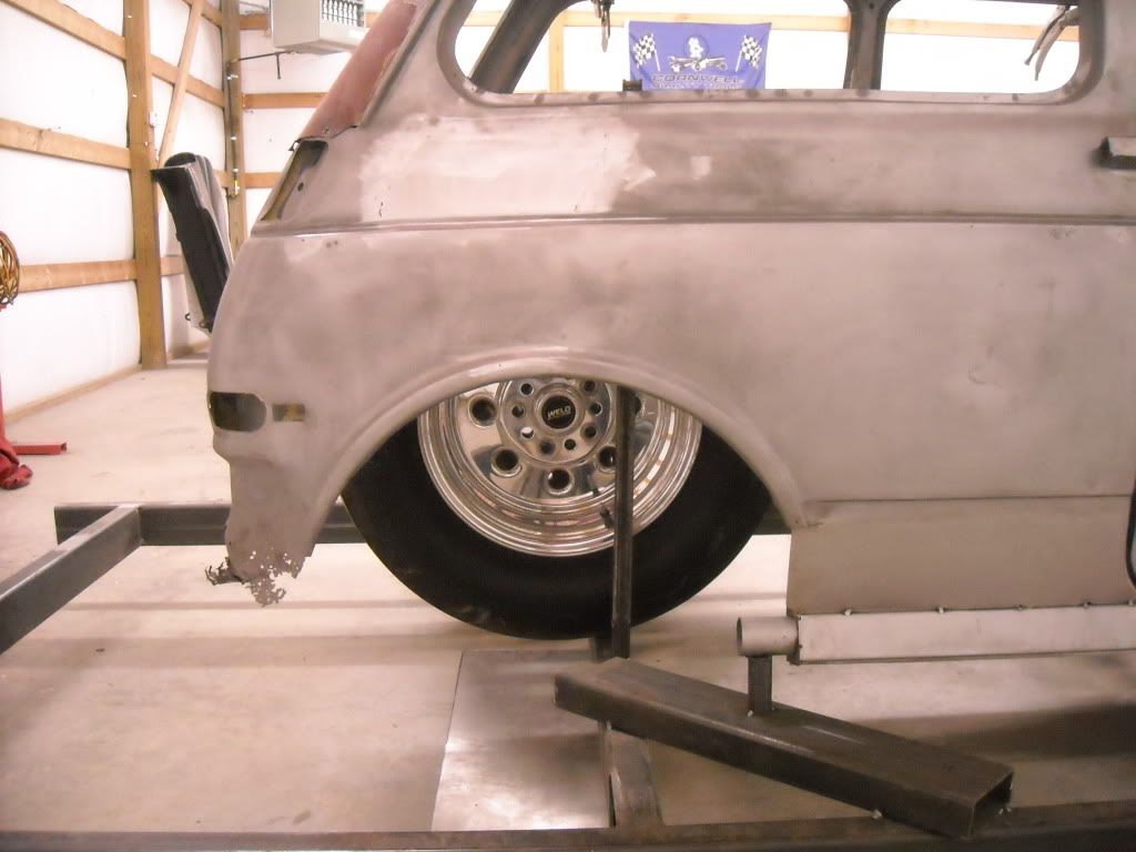 New tires arrived yesterday. Waiting on rear tires and alot of other parts to make this a roller! Plans are to stretch the rear quarters and see how big of a wheel we can stuff inside. DeWayne