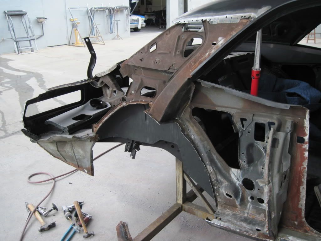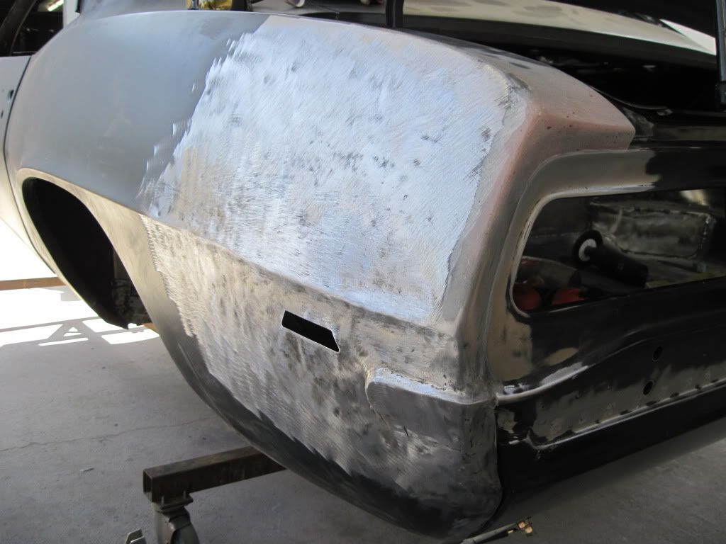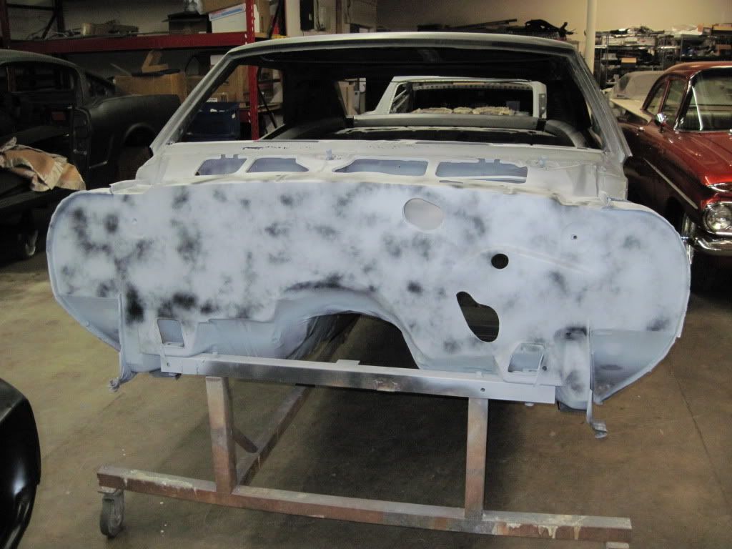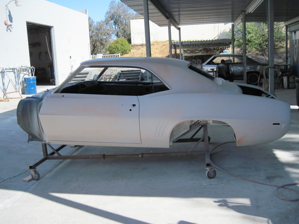 ============================== Sheesh! Whoever said it never rains in Cal? The body, doors, fenders and panels have all been epoxy primered. Again, I forgot to take pics of the doors, hood and fenders. Crap! Here's the body, cowl grille vent, header and valence panels http://i29.photobucket.com/albums/c2...d/IMAG0151.jpg http://i29.photobucket.com/albums/c2...d/IMAG0131.jpg http://i29.photobucket.com/albums/c2...d/IMAG0132.jpg http://i29.photobucket.com/albums/c2...d/IMAG0133.jpg http://i29.photobucket.com/albums/c2...d/IMAG0152.jpg http://i29.photobucket.com/albums/c2...d/IMAG0154.jpg http://i29.photobucket.com/albums/c2...d/IMAG0155.jpg It's interesting to see the before and after of the right quarter. It's going have to be replaced. Really shoddy work done previously. Here it is as I got the car: http://i29.photobucket.com/albums/c2...n/SDC10060.jpg The damage really becomes noticeable here: http://i29.photobucket.com/albums/c2...p/IMAG0063.jpg And here's the full extent of what has to be dealt with. From back to front and a problem area at the bottom: http://i29.photobucket.com/albums/c2...d/IMAG0143.jpg http://i29.photobucket.com/albums/c2...d/IMAG0144.jpg http://i29.photobucket.com/albums/c2...d/IMAG0145.jpg http://i29.photobucket.com/albums/c2...d/IMAG0146.jpg |