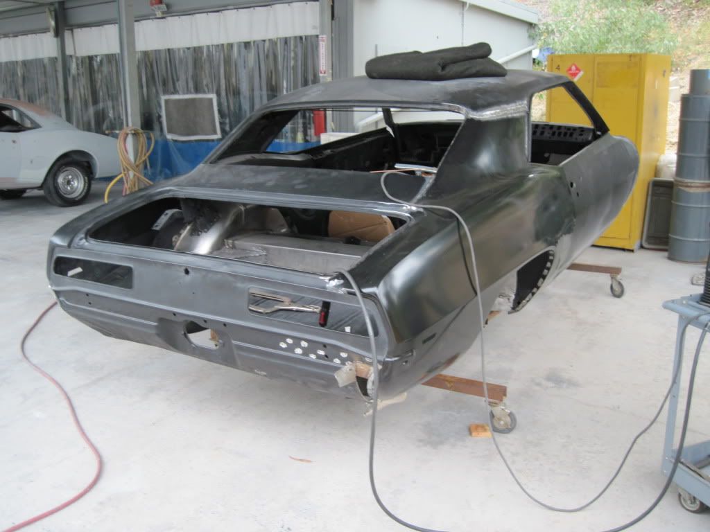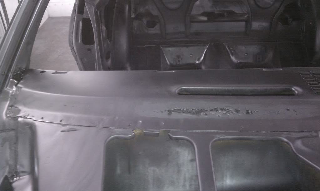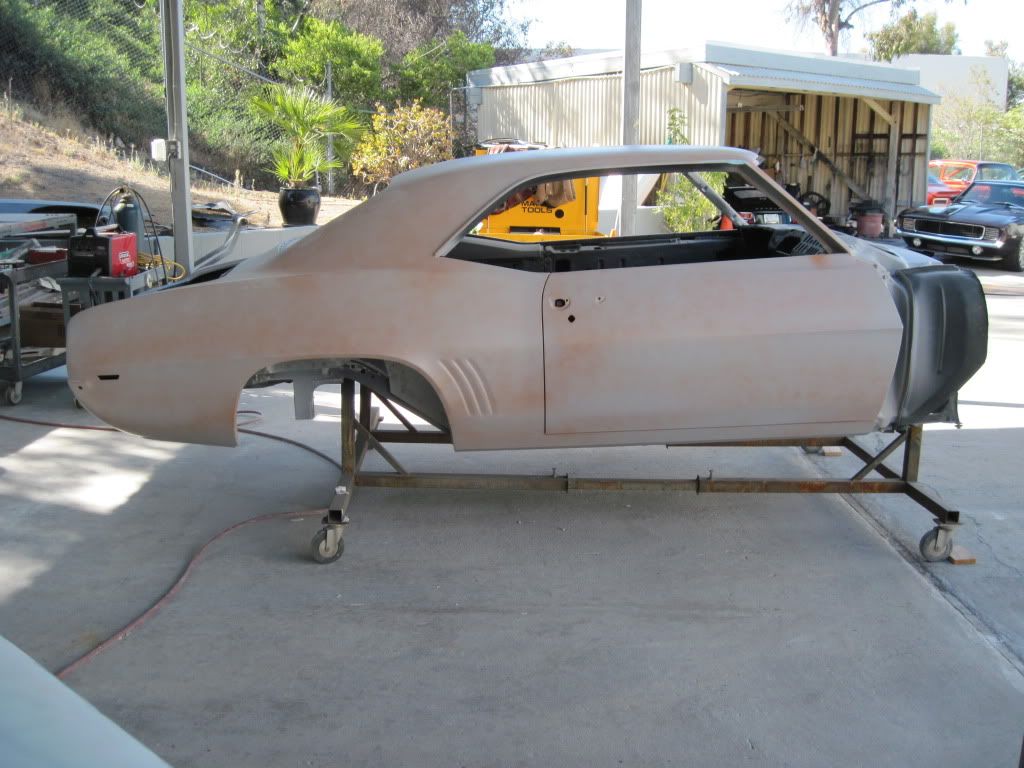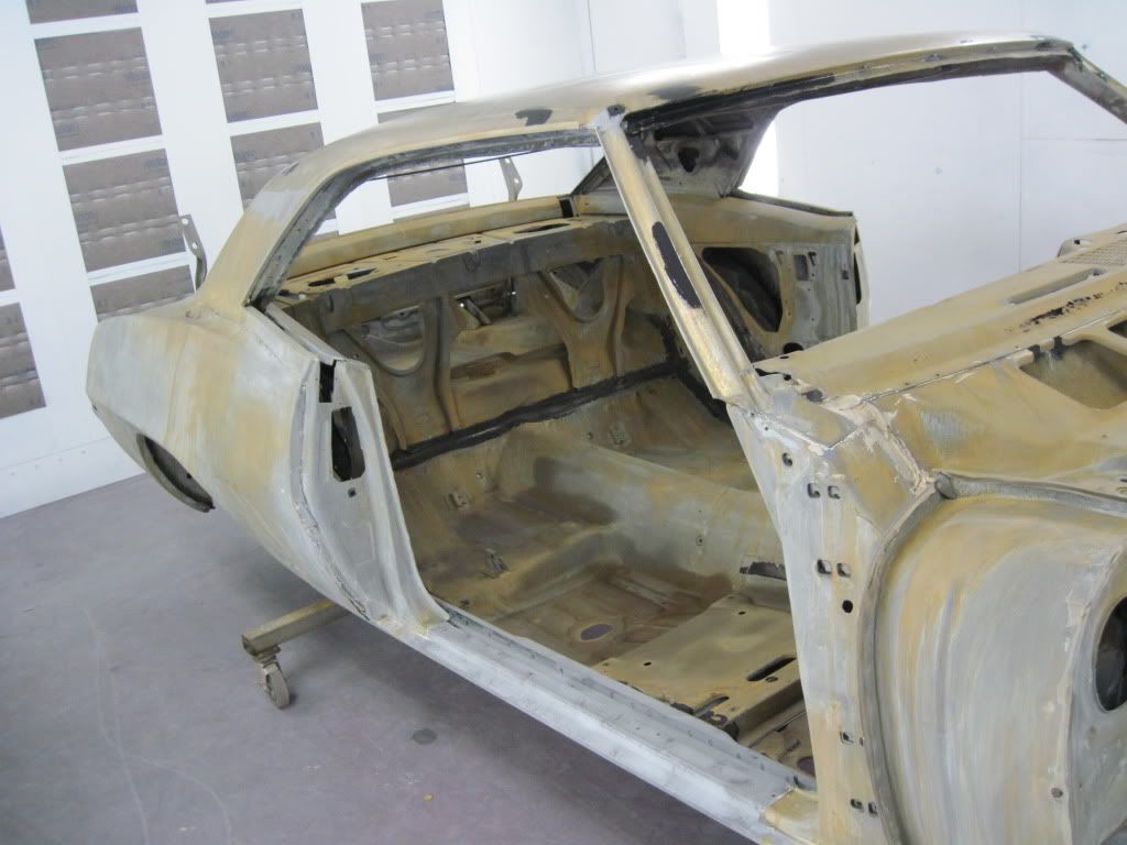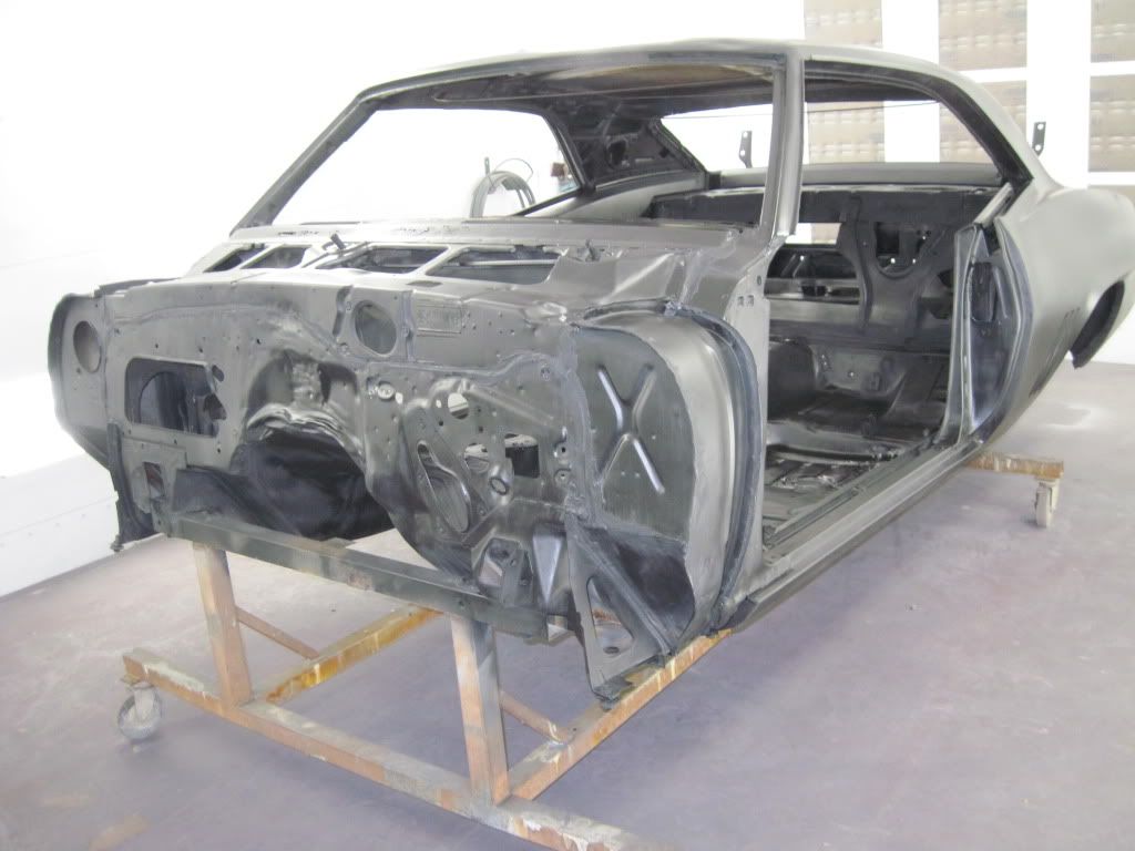 ============================== Sheesh! Whoever said it never rains in Cal? The body, doors, fenders and panels have all been epoxy primered. Again, I forgot to take pics of the doors, hood and fenders. Crap! Here's the body, cowl grille vent, header and valence panels http://i29.photobucket.com/albums/c2...d/IMAG0151.jpg http://i29.photobucket.com/albums/c2...d/IMAG0131.jpg http://i29.photobucket.com/albums/c2...d/IMAG0132.jpg http://i29.photobucket.com/albums/c2...d/IMAG0133.jpg http://i29.photobucket.com/albums/c2...d/IMAG0152.jpg http://i29.photobucket.com/albums/c2...d/IMAG0154.jpg http://i29.photobucket.com/albums/c2...d/IMAG0155.jpg It's interesting to see the before and after of the right quarter. It's going have to be replaced. Really shoddy work done previously. Here it is as I got the car: http://i29.photobucket.com/albums/c2...n/SDC10060.jpg The damage really becomes noticeable here: http://i29.photobucket.com/albums/c2...p/IMAG0063.jpg And here's the full extent of what has to be dealt with. From back to front and a problem area at the bottom: http://i29.photobucket.com/albums/c2...d/IMAG0143.jpg http://i29.photobucket.com/albums/c2...d/IMAG0144.jpg http://i29.photobucket.com/albums/c2...d/IMAG0145.jpg http://i29.photobucket.com/albums/c2...d/IMAG0146.jpg |