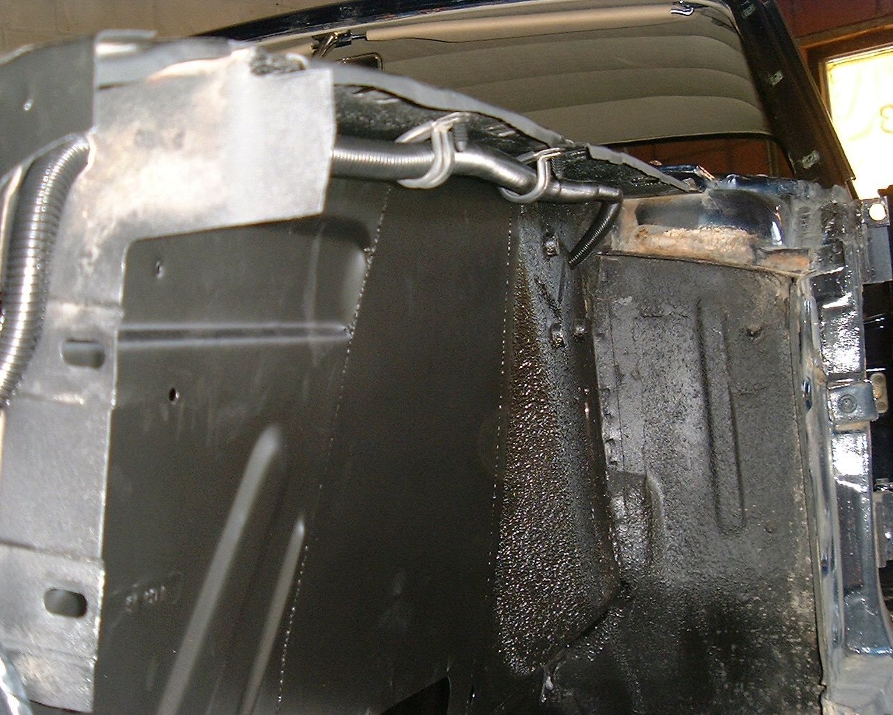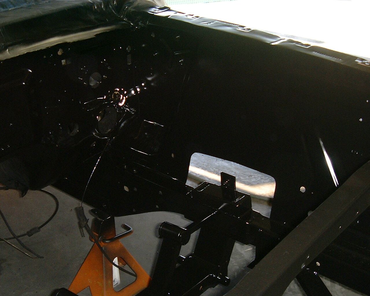 http://img.photobucket.com/albums/v3...20Coupe/91.jpg http://img.photobucket.com/albums/v3...20Coupe/93.jpg Dashboard is now black http://img.photobucket.com/albums/v3...20Coupe/96.jpg Installed the rear seat and new rear speakers http://img.photobucket.com/albums/v3...20Coupe/97.jpg To keep the engine compartment clean we are running the wires outside the fender aprons. Brian drilled a couple of holes to hold the clamps and than used plastic clips that will be under the fender so you won't see anything. http://img.photobucket.com/albums/v3...20Coupe/99.jpg http://img.photobucket.com/albums/v3...0Coupe/100.jpg |
