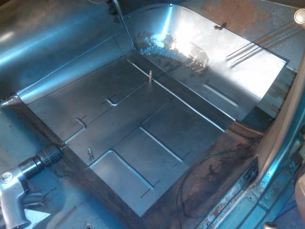 got a few things done, motors mounted, trans tunnels trimmed, found the start of some rust in the floor so i decided to cut the front toe section out and replace it with new metal. got the snout bars made also.