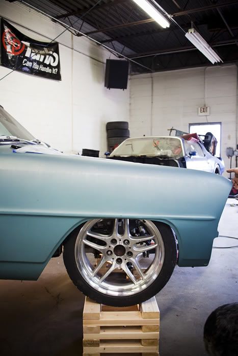 http://i297.photobucket.com/albums/m...00116-1450.jpg Got the rear calipers, they are from a 06 CTS-V. Fronts should be here in the next week or so. http://i297.photobucket.com/albums/m...01129-1427.jpg Well a few weeks went by and i kept telling myself i wasnt going to take this thing apart until my race car was back togheter.... but......................... i am impatient :lol: Hood off http://i297.photobucket.com/albums/m...10102-1242.jpg Motor on its way out (You know you like the fender covers!!!!LOL cant get greasy finger prints on that patina!!!) http://i297.photobucket.com/albums/m...10102-1402.jpg Fenders off... http://i297.photobucket.com/albums/m...10102-1556.jpg front end all unbolted and off the car http://i297.photobucket.com/albums/m...10102-1622.jpg 417 front sub bolted on http://i297.photobucket.com/albums/m...10102-1634.jpg Corvette A arms, spindles, and coilovers mounted http://i297.photobucket.com/albums/m...10102-1724.jpg proposed front ride height http://i297.photobucket.com/albums/m...10102-1728.jpg Just getting a feel for how much of the trans tunned will need trimmed http://i297.photobucket.com/albums/m...10102-1738.jpg All in all im really happy with the way everything is going so far. I will get some temporary upper strut/downbars fabbed this week and make it stable enough to get some motor and trans mounts built and then i will get the rack and bumpsteer kit bolted on. I will update this in the days to come as we get more of the fun stuff done!!! OH YA seats are ordered also and will be here mon-tues Cheers! Blake |