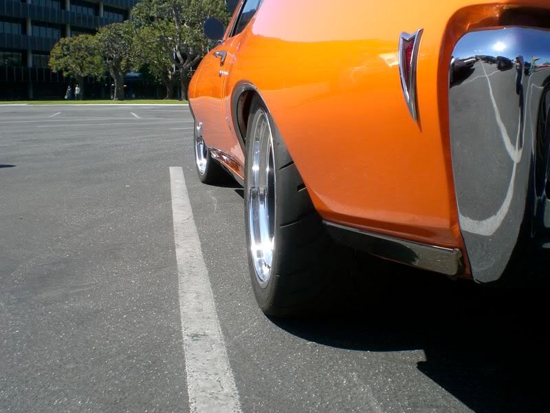 2 Attachment(s) Bandit Dave, I have 20x11's on my rear with a 305 and I love the way it sits and drives.  I have coilovers on the rear and my shop guy nailed the ride height and dialed in the perfect compression on the coilovers.  So, I have no complaints about my ride quality.  All I did was roll my fenders and they tuck up under pretty nice.  I think the 20's on the rear will be perfect.  Especially on an A-body.  I like the 20's on the A-body rears since the are larger cars.  I run a 305/30/20 on my Chevelle.  Take a look and tell me what you think.  I cannot comment on the front, as far as 19's go, because I have 20 on the front too.  :_paranoid |
