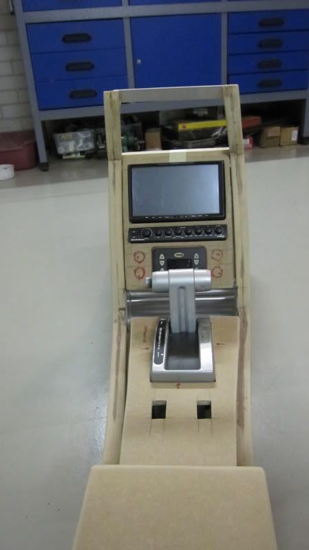 Jig saw, small/inexpensive sander from harbor frieght, spray adhesive, bondo or sheet foam(blue insulation from home depot) cut that with a steak knife....cover with fabric or vinyl or leather.....one custom console for under $100.00 including the sander and jig saw from HF. Dont use the foam for structural parts. Too soft. Just use it to contour the shape you want. Adhere it to the wood base. Use 3M spray90 adhesive. It stinks but it works way better than the spray77 version.