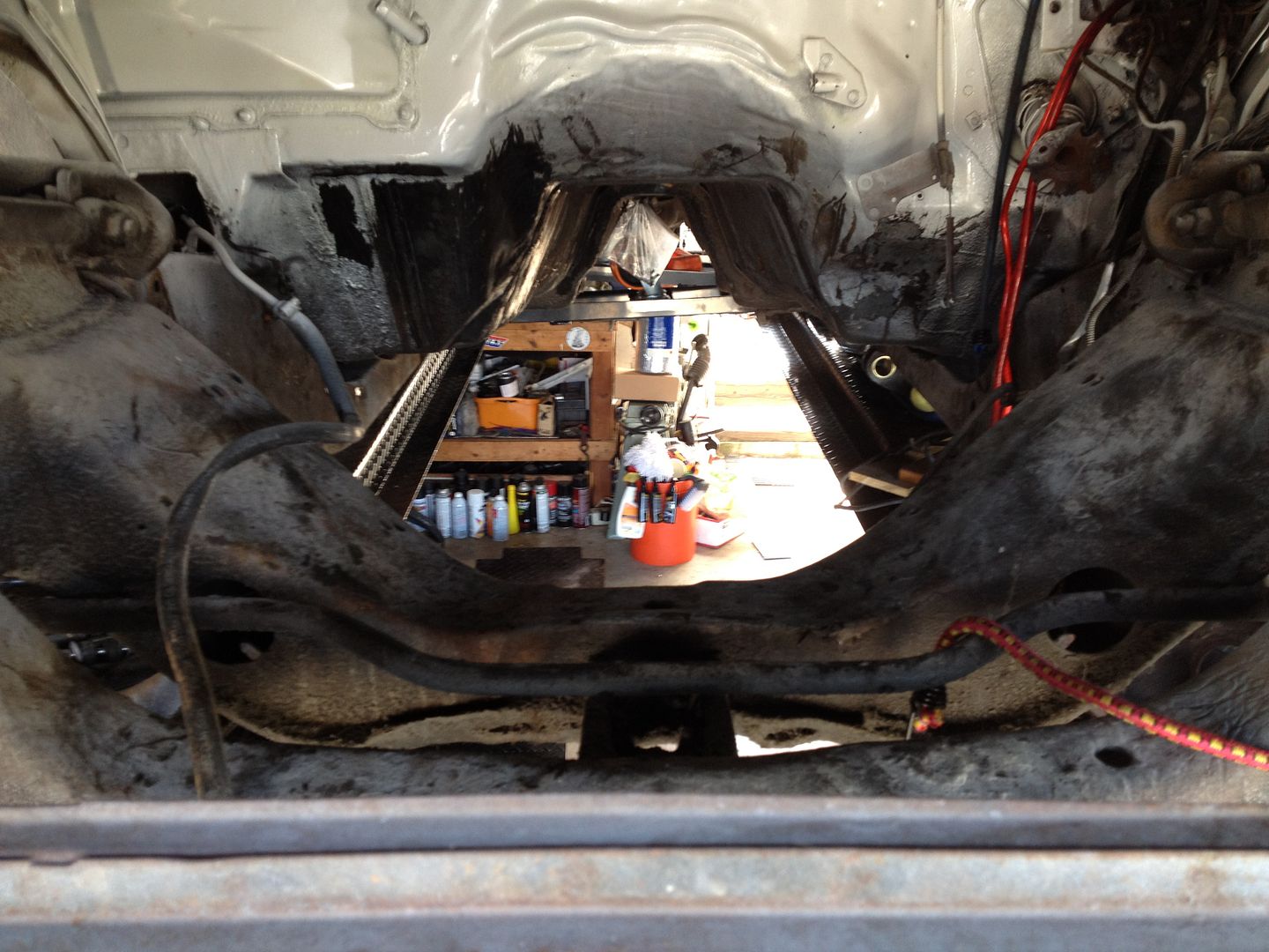 I have been working on Lolla and made some progress recently, basically full front, sub frame etc. all removed and getting prepared to put the new setup in. Sleep has become overrated and any time I can squeeze in on the project when I am not at work or around the kiddos and wife (she has been very supportive - meaning clean up that messy garage or I am calling 1800-got junk...seriously :). With support and motivation like that I got to get things done, no excuses :) Last week I removed and stripped the sub-frame, painting some stuff, and a lot of other stuff started happening in parallel :) Some pics form latteeee last night (sleep is overrated anyways): stripped and took the rest of front clip apart, harness inner fender, etc removing the old undercarriage stuff was just nasty, and am thankful there are no rust spots underneath the stuff. I was pretty amazed but whoever did the undercoating did an incredible job, the paint was looking pretty fresh underneath all that stuff. Before: http://img.photobucket.com/albums/v2...psf329c481.jpg http://img.photobucket.com/albums/v2...ps14c7f69e.jpg compressing the springs had me sweating bullets: http://img.photobucket.com/albums/v2...ps1427ba79.jpg After: http://img.photobucket.com/albums/v2...ps4b13ad15.jpg Mocking up the front tire riding height. http://img.photobucket.com/albums/v2...ps5caca7cd.jpg So quick specs on what will be going in the car: -upgraded subframe - modified sub, re-welded factory welds, strengthened, powdercoated and then painted -Ridetech air-ride front and rear - I am building a custom setup with a wireless controller so wish me luck lol :) -GW control arms and other goodies -Body mounts, am debating solid or poly, have both but likely solid on this car. -LS1, manual 6 speed. Appreciate everyone's input here, need top figure out color scheme for the engine, leaning towards the Pontiac metallic blue or gunmetal, etc, let me know your thoughts, engine bay is black and pearl white so pearl blue\Pontiac metallic blue may be semi pimpalicious?? -18" whels 275 rears non tubed -4th gen Pntiac\Camaro\Vette brakes, and the list goes on and on :) Gui |